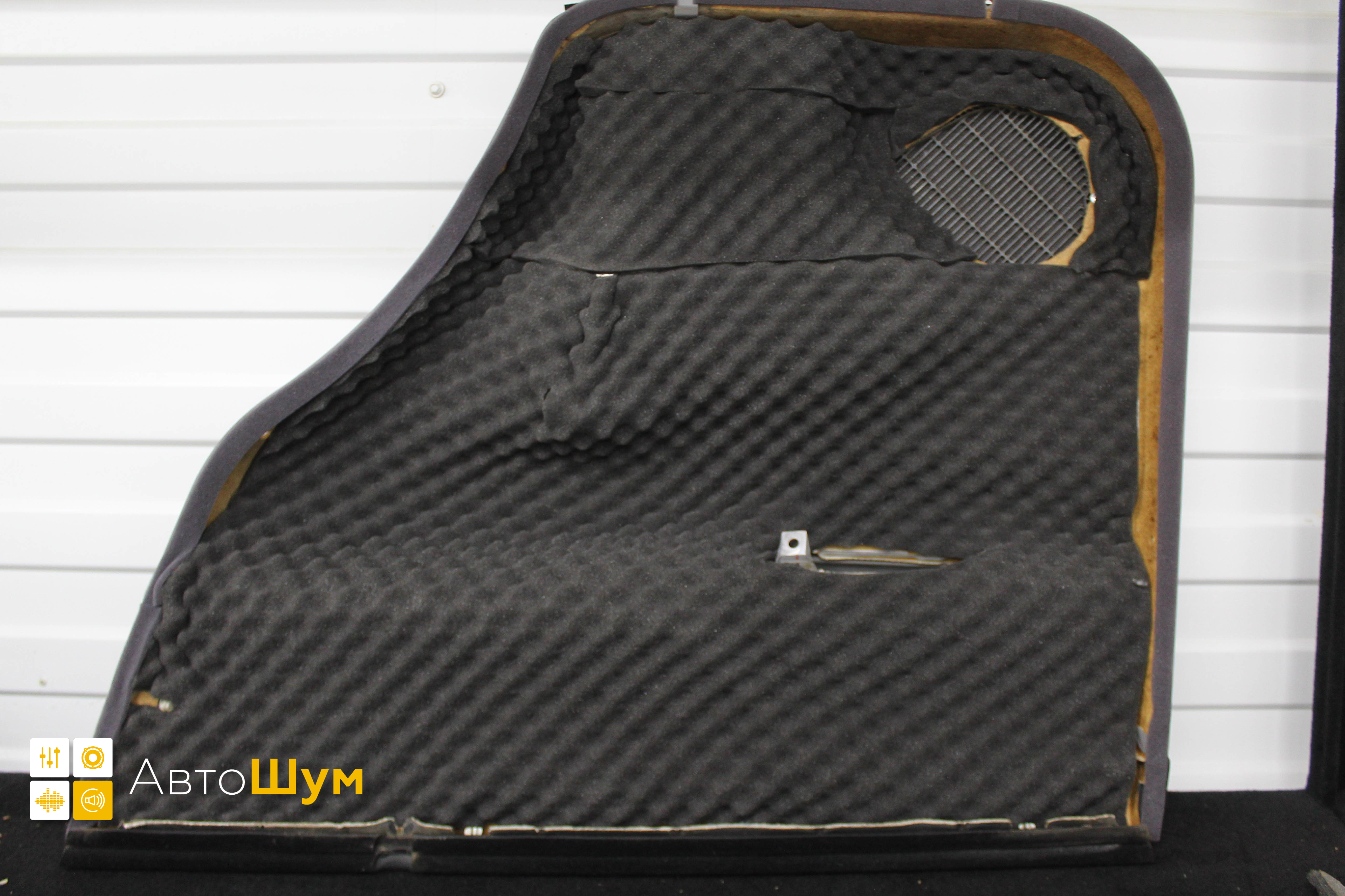 Внутренняя поверхность обивки оклеивается шумопоглотителем Шумофф Flex А15.