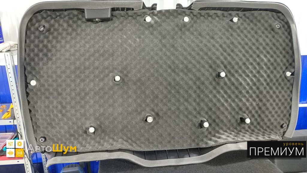 Крышку багажника оклеиваем виброизоляцией Шумофф Joker, это позволит свести увеличение ее веса к минимуму, дабы не возникло проблем с открыванием багажника.