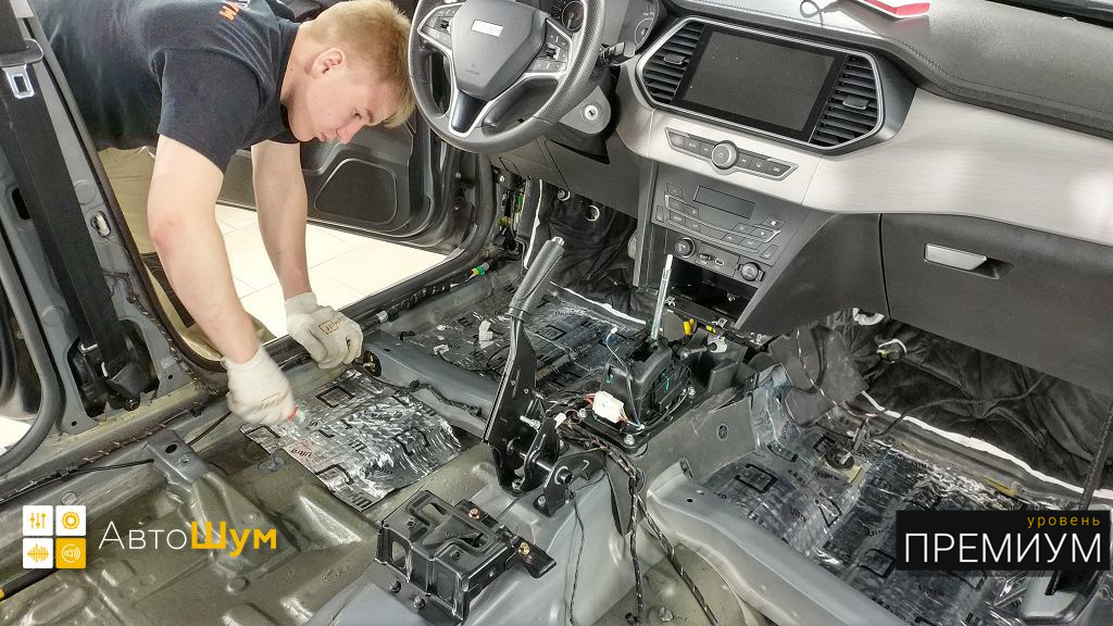 Перед началом шумоизоляции пола на Lifan Х70 (Лифан Х70); необходимо проверить качество адгезии заводской виброизоляции к кузову. Она должна хорошо держаться, в противном, случае её необходимо демонтировать.