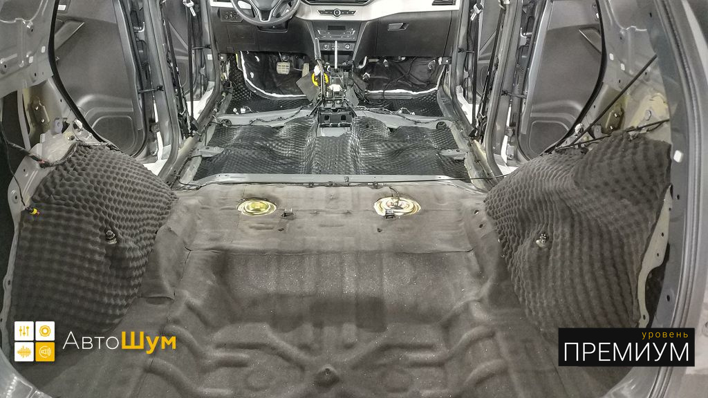 Под заднее сиденье монтируем более тонкий Герметон 7. На арки же наносится шумопоглотитель Absorber А15.