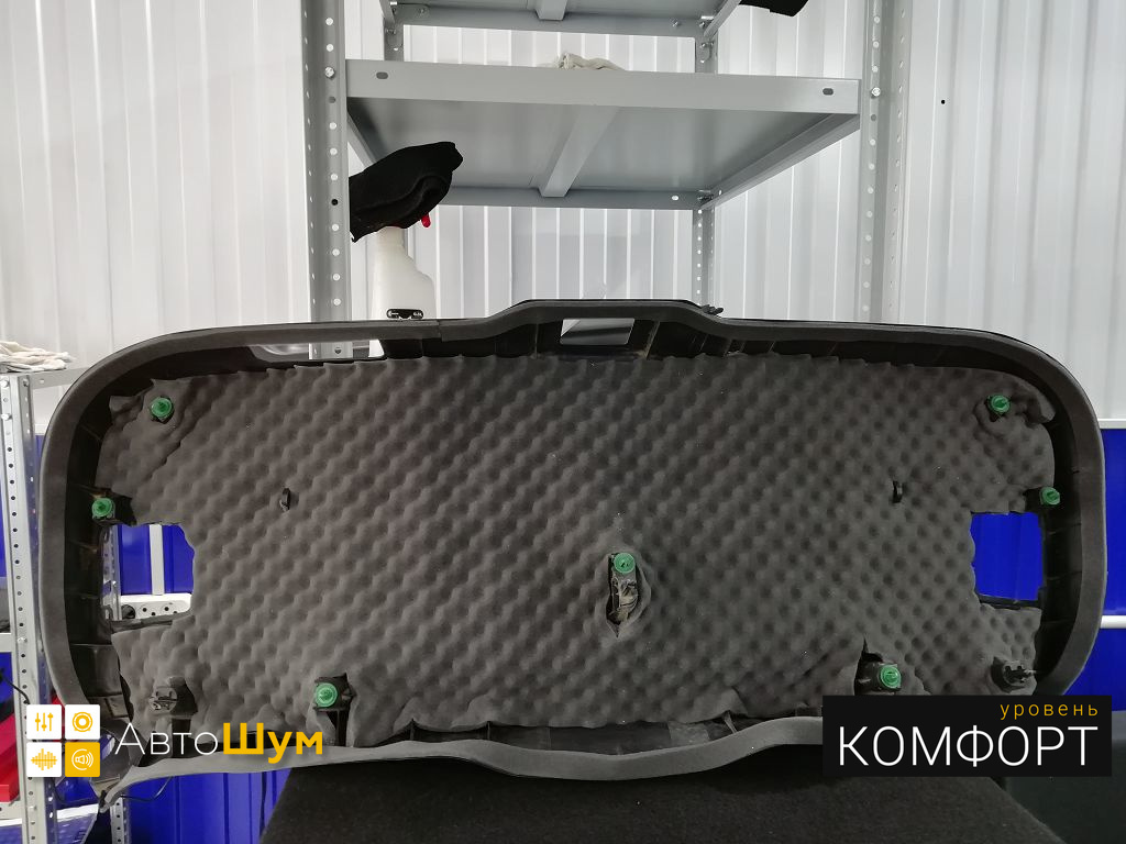 Крышку багажника оклеиваем виброизоляцией Шумофф L2, это позволит свести увеличение ее веса к минимуму, дабы не возникло проблем с открыванием багажника.