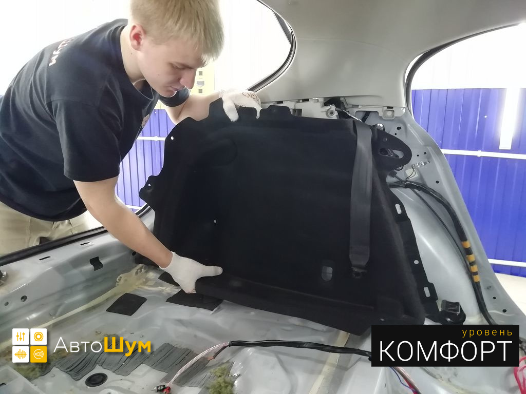 В багажнике так же необходимо проверить качество заводской виброизоляции и далее подготовить поверхность к монтажу, обезжирив её.