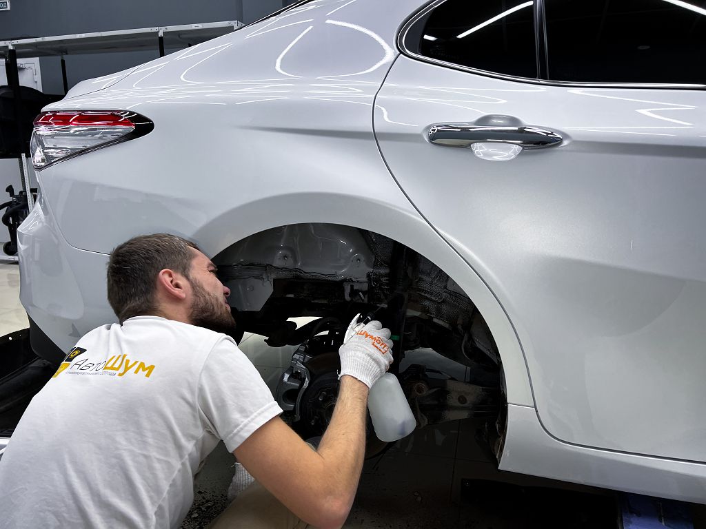 Все дно и арки оклеиваем шумопоглотителем Шумофф Герметон 7л.