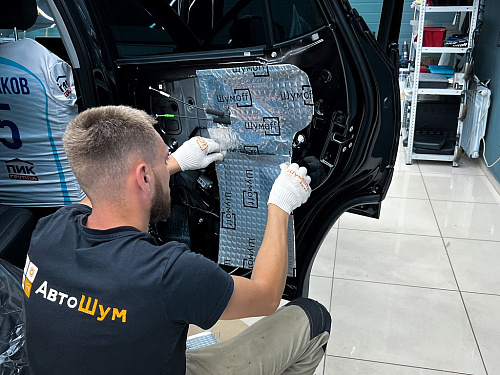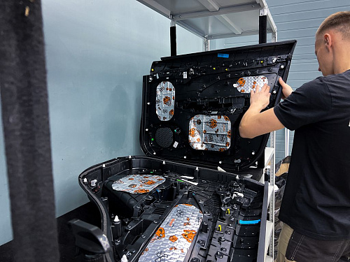 Внутренняя поверхность обивки оклеивается шумопоглотителем Flex А15.