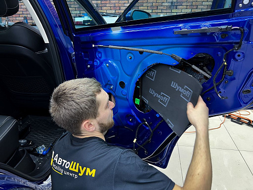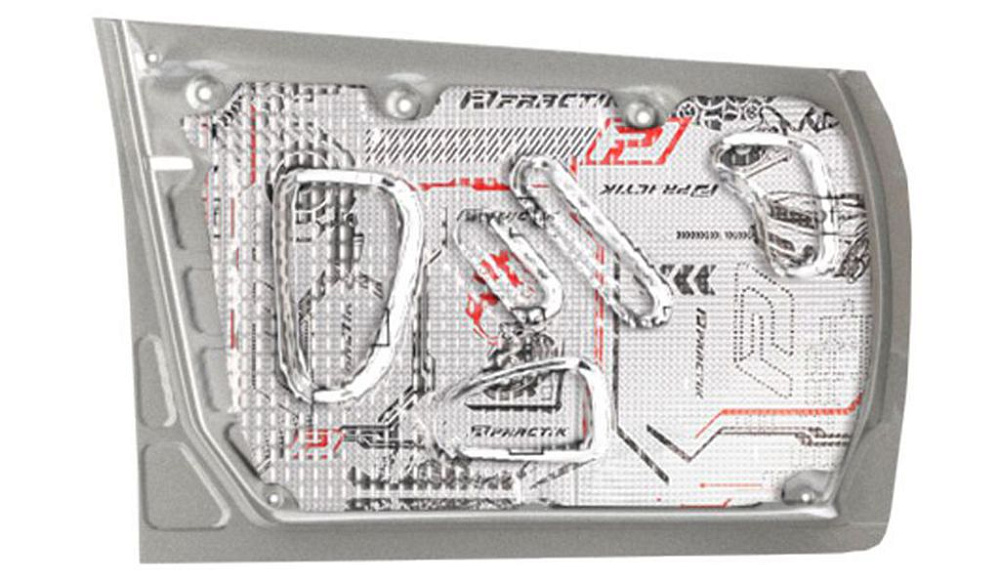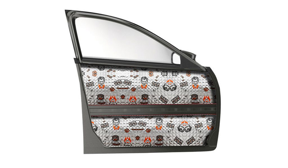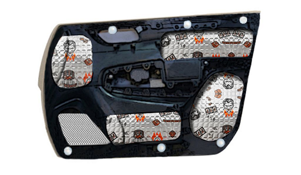 Переходим к оклейке самого корпуса панели, первым слоем частично наносим виброизоляцию Шумофф Joker, создавая тем самым идеальный баланс. Такая частичная оклейка позволит нам чрезмерно не утяжелять панель и придать ей необходимую сбитость