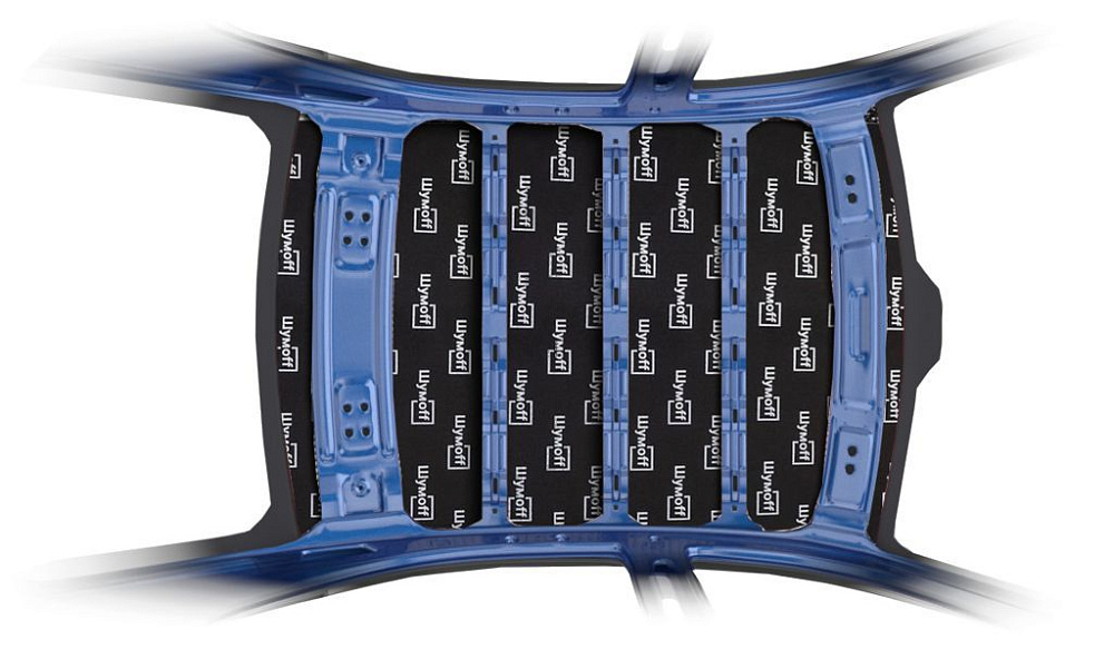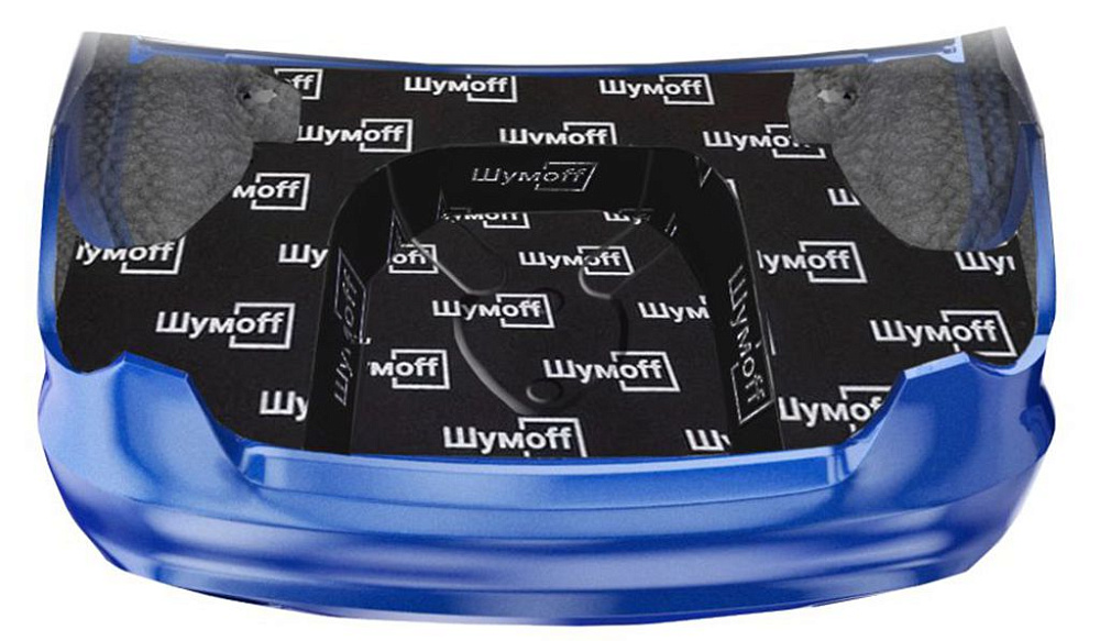 Дно и арки оклеиваются толстой виброизоляцией Шумофф Practik 3. Крылья и крышка оклеиваются виброизоляцией Шумофф Practik 2,1.