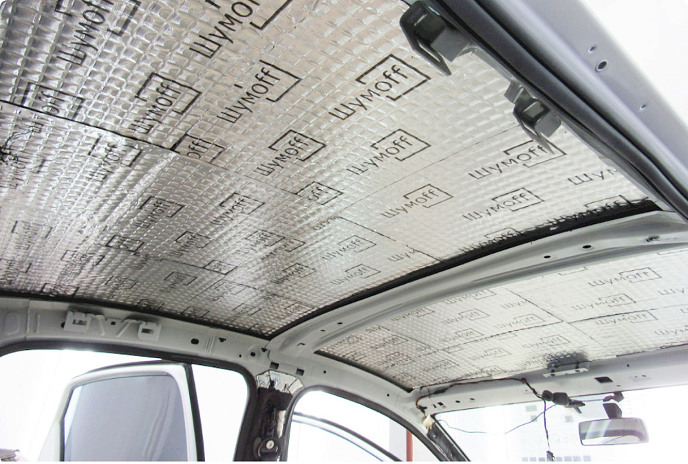 Вторым слоем поверх виброизоляции клеим на крышу современный и очень эффективный шумопоглотитель Шумофф Absorber А15.