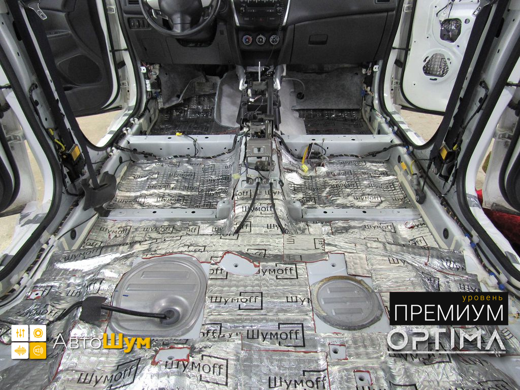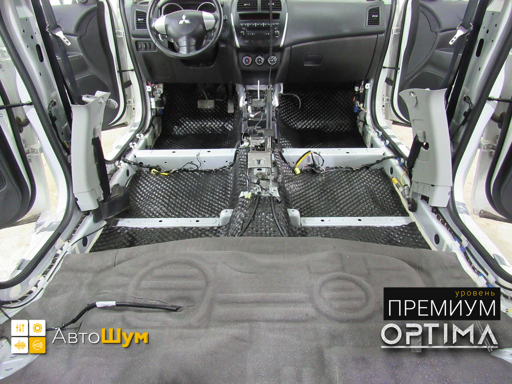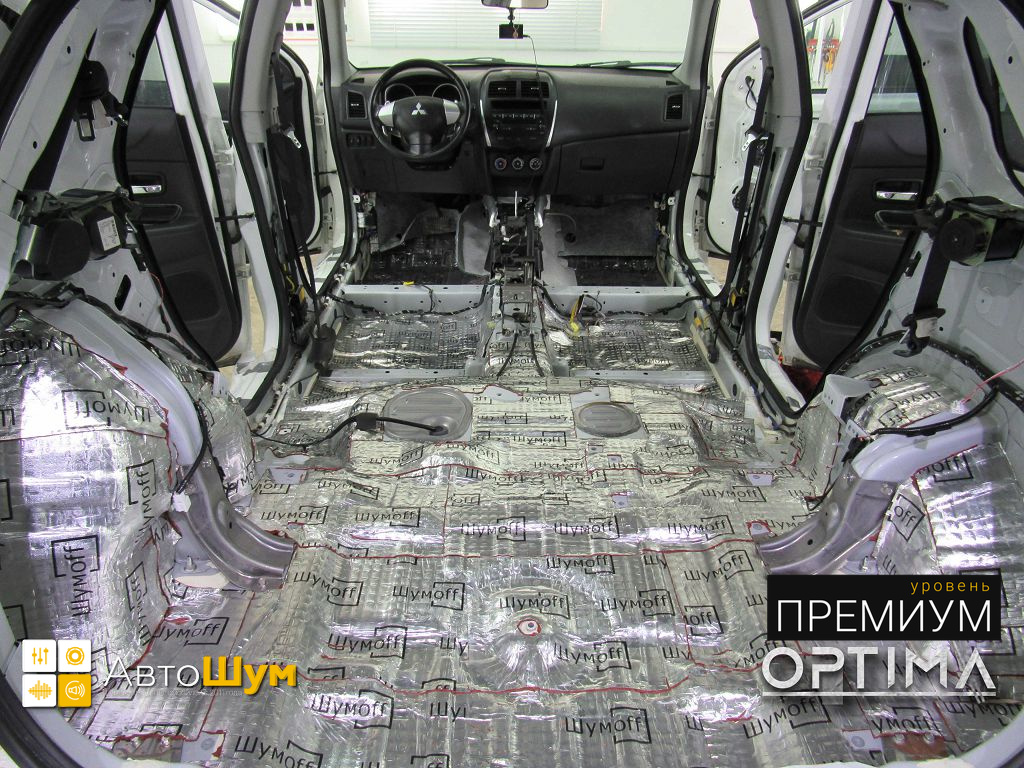Автомобили Mitsubishi, особенно кроссоверы, как и большинство Японских автомобилей оснащены относительно слабой шумоизоляцией салона. Это же касается и Mitsubishi ASX. Шум и гул от колес при езде по плохому покрытию во время длительных поездок утомляет, что в свою очередь влияет на безопасность. Исправить эти недочёты можно, сделав дополнительную шумоизоляцию Митсубиси АСХ.