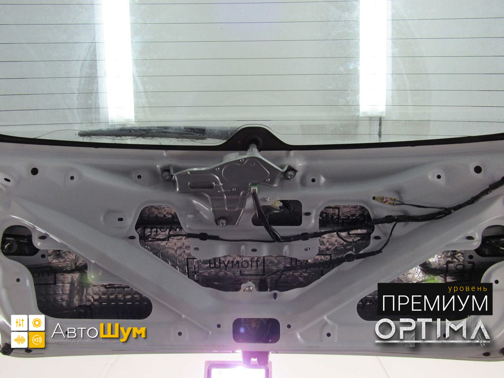 Крышку багажника оклеиваем виброизоляцией Шумофф Joker, это позволит свести увеличение ее веса к минимуму, дабы не возникло проблем с открыванием багажника.