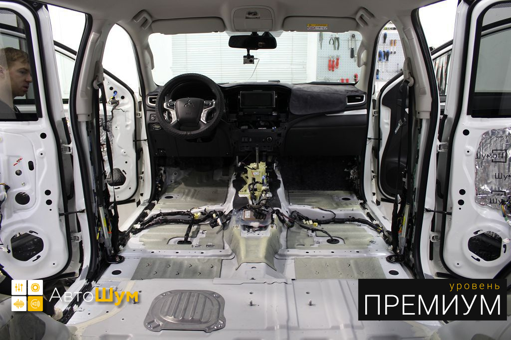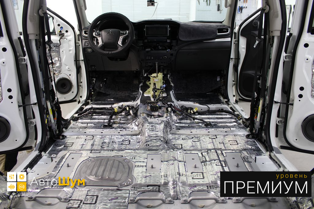 Mitsubishi Pajero Sport не славятся хорошей шумоизоляцией. Очень скрипучий и брякающий пластик всего салона и панели, а так же шум от колёс при езде по дорожному покрытию раздражают владельцев этого авто. Исправить эти недочёты можно, сделав дополнительную шумоизоляцию Митсубиси Паджеро Спорт.