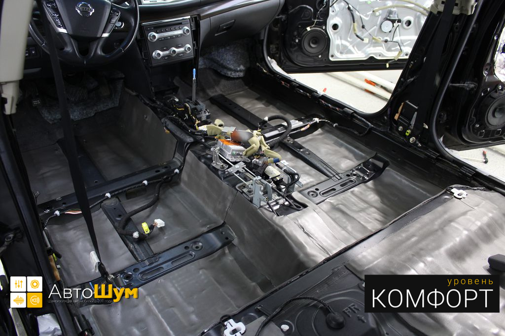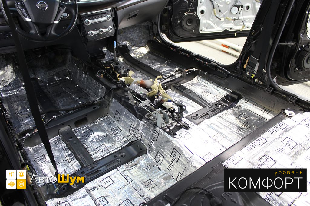Nissan Teana- автомобиль долгое время занимавший лидирующие позиции на Российском рынке. Современный роскошный интерьер, необычный дизайн, соответствующая автомобилю такого класса богатая комплектация и отличные динамические характеристики. Модель олицетворяет собой передовые технологии компании Nissan. Однако, даже такой автомобиль, как Teana нуждается в хорошей дополнительной шумоизоляции, которая позволяет избавиться от постороннего шума, обеспечивая дополнительный комфорт.
