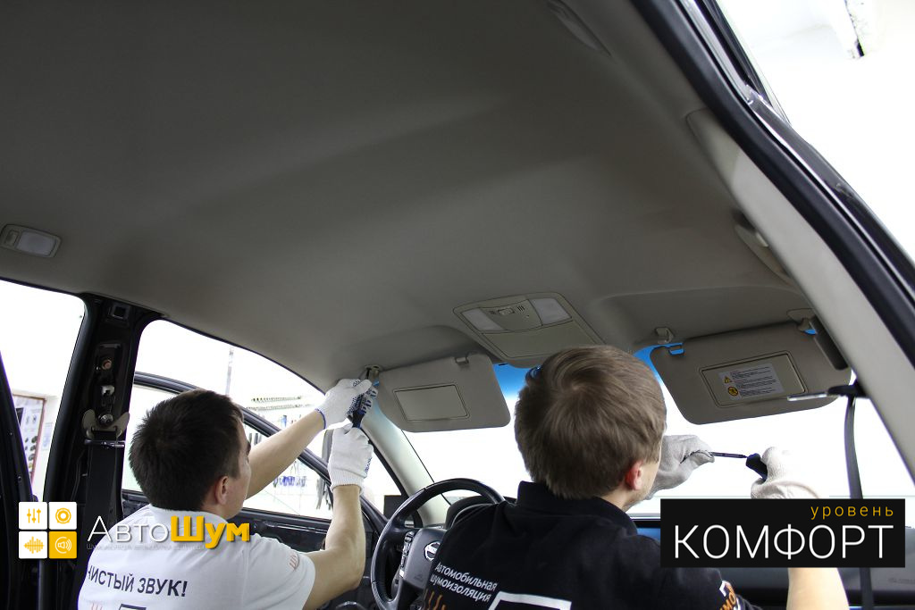Оклейка шумо-теплоизолятором крыши Nissan Teana