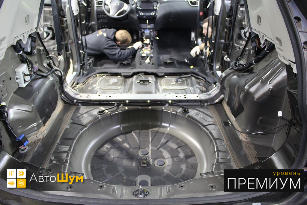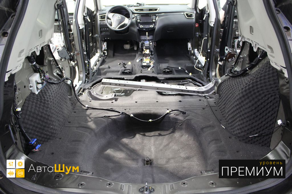 Nissan X-Trail просторный и относительно не дорогой кроссовер, одним из недостатком которого является низкий уровень шумоизоляции, особенно беспокоит владельцев шум и гул от задних колес. Исправить эти недостатки можно, сделав дополнительную шумоизоляцию Ниссан Х Трейл