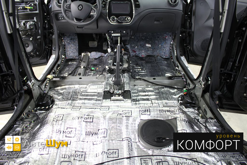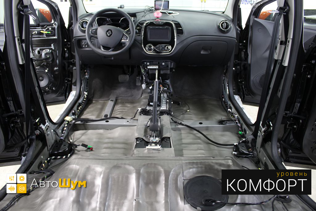 Renault Kaptur - компактный полноприводный кроссовер созданный на базе Рено Дастер, но обладающий стильным и ярким дизайном. Однако все же перенял и родовые болячки, такие как шум от колес и дорожного покрытия, посредственную теплоизоляцию салона а так же то тут, то там появляющиеся скрипы салона. Исправить все эти проблемы можно если сделать дополнительную шумоизоляцию салона Рено Каптюр.
