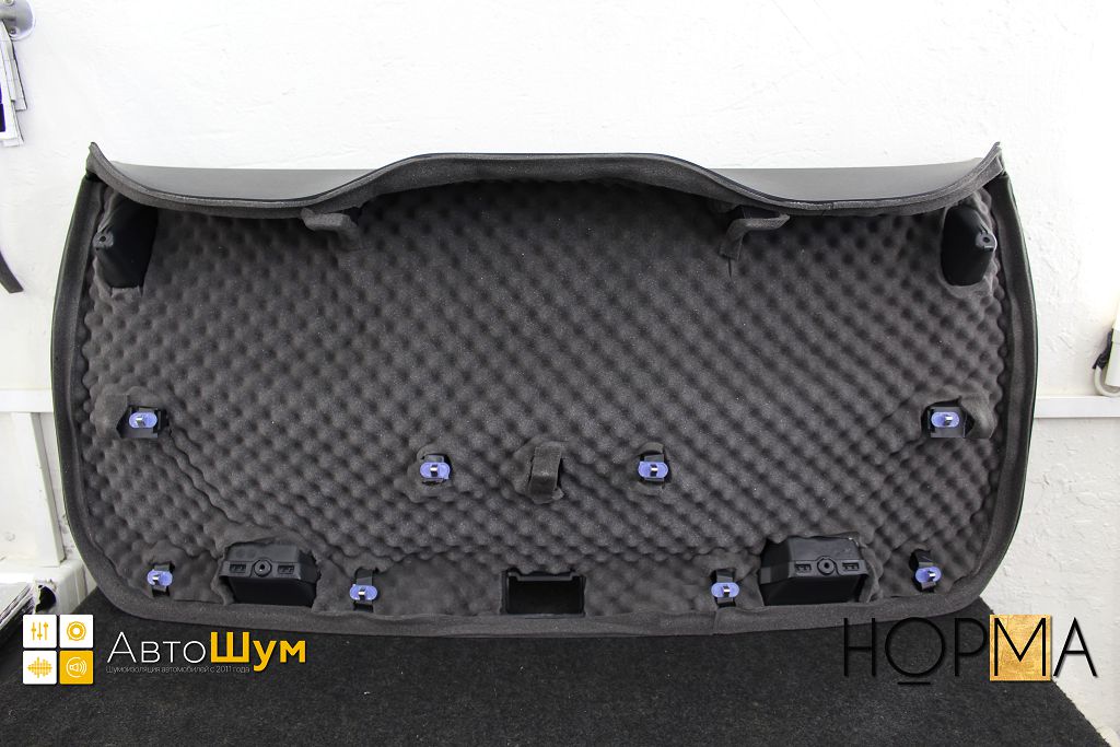 Для виброизоляции крыши багажника используем материал Шумофф М2, чтобы свести увеличение веса к минимуму. После чего переходим к обшивке.