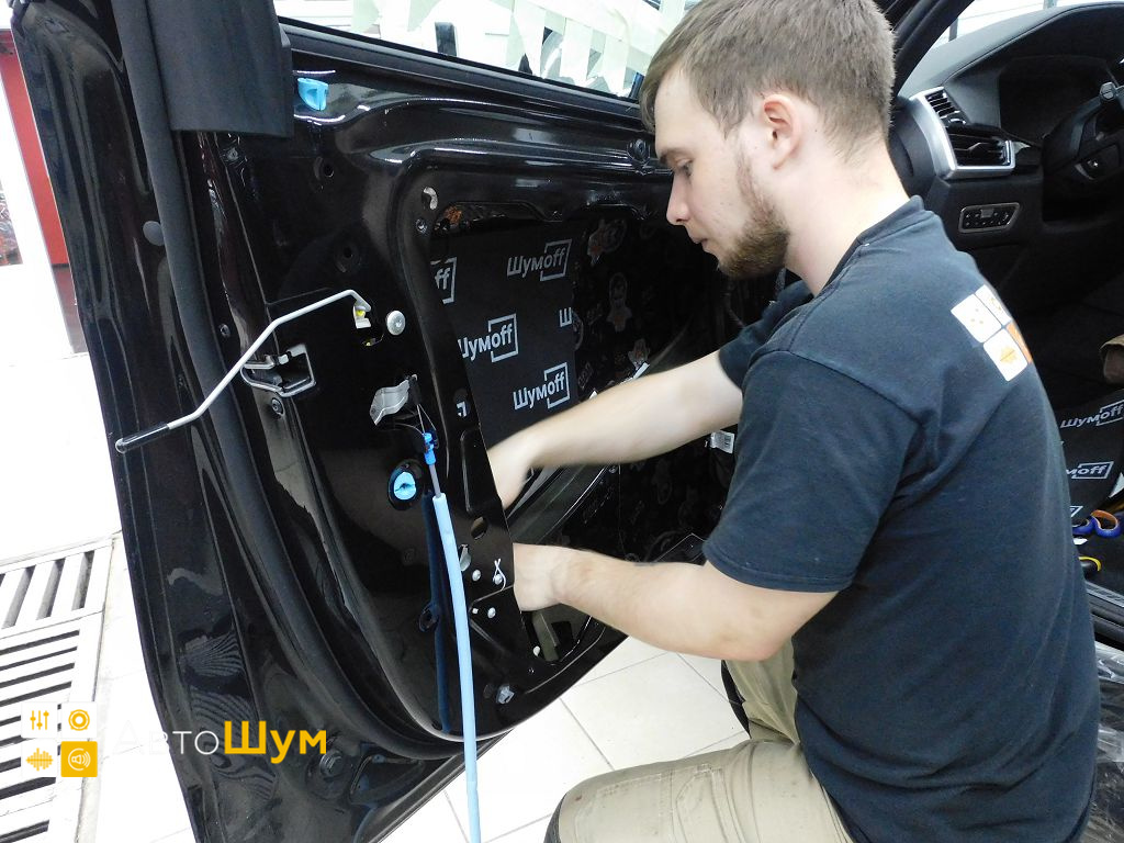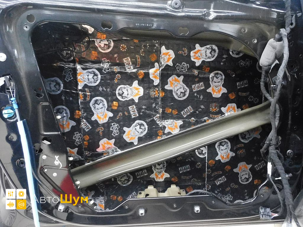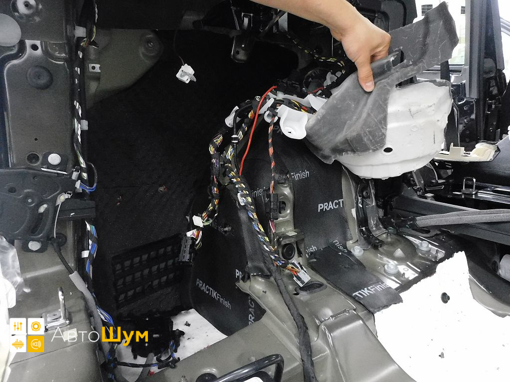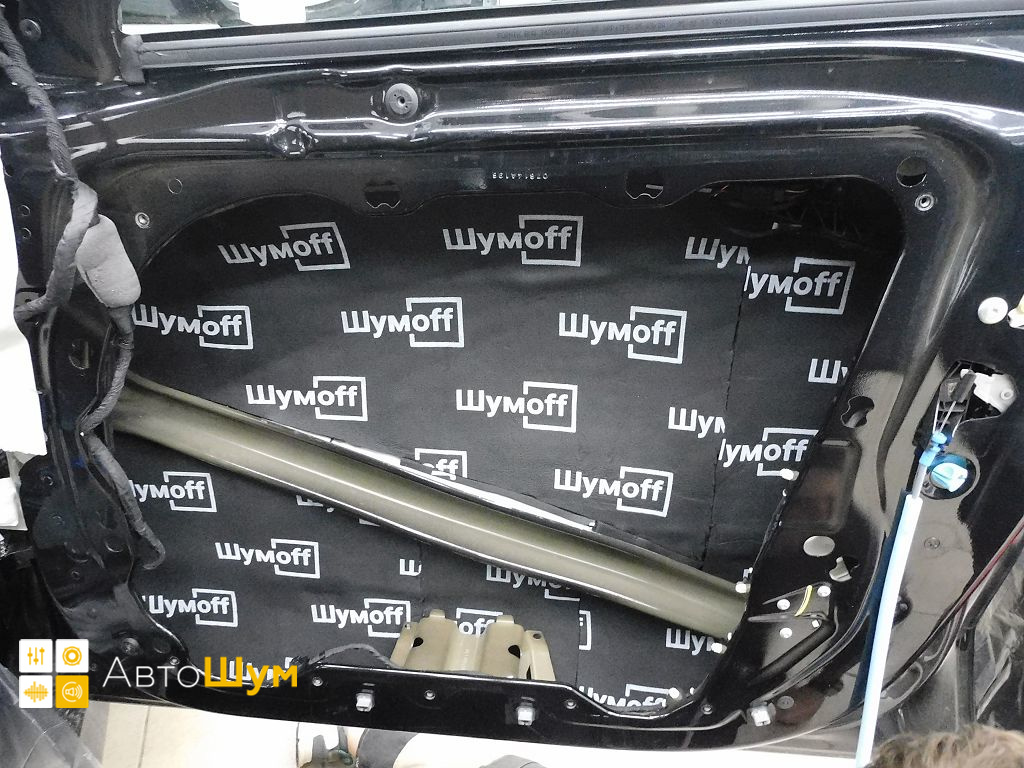 Дно оклеивается многослойным шумо и звукоизолятором Шумофф Prizma 6, крылья, арки и крышка багажника шумопоглотителем Absorber A15.