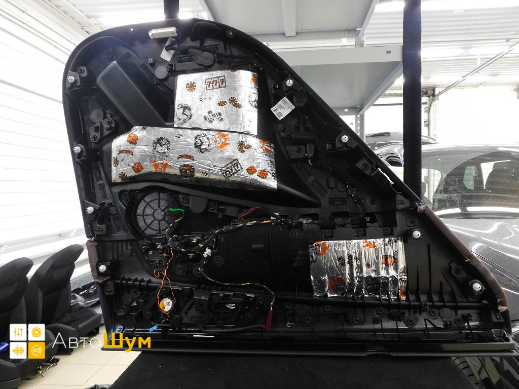 Внутренняя поверхность обивки оклеивается шумопоглотителем Flex А15.