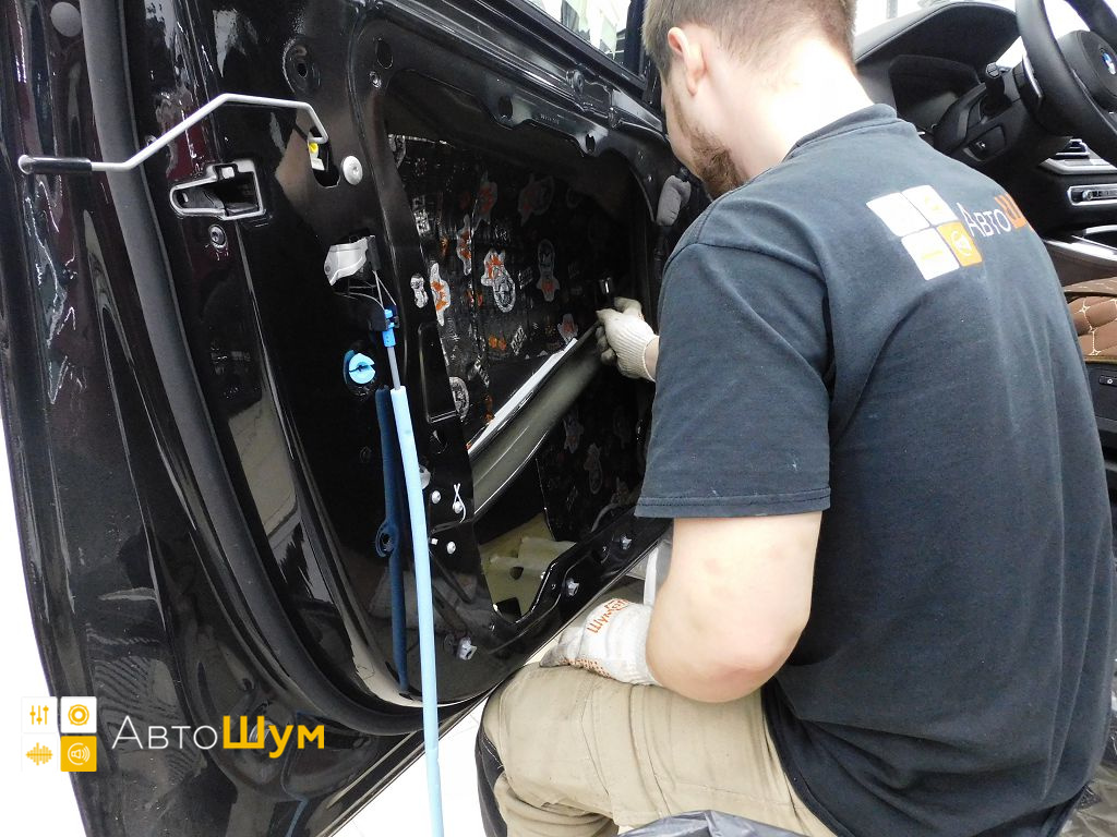 Готовый слой Шумофф Комфорт 6 на двери БМВ Х5 Вторым слоем внутрь двери поверх виброизоляции клеим современный шумо и теплоизолятор Шумофф Комфорт 6.