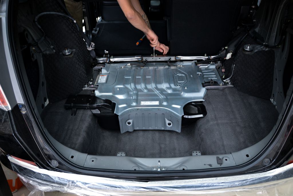Разбираем багажник, все детали складываем на специальный стеллаж.