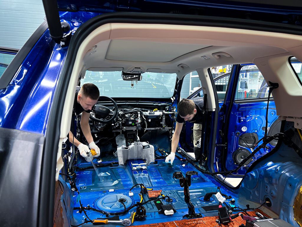 Откручиваем и вынимаем сиденья, пластик и центральную консоль. Все детали салона складываем на специальный стеллаж, что бы сохранить их в первозданном виде.