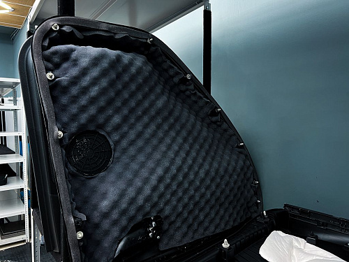 Внутренняя поверхность обивки оклеивается шумопоглотителем Шумофф Flex А15.