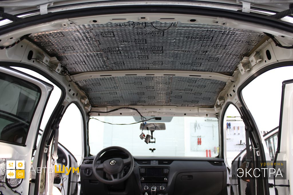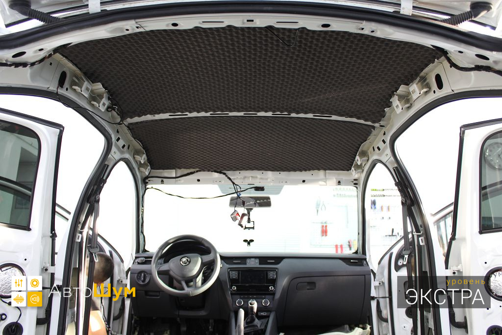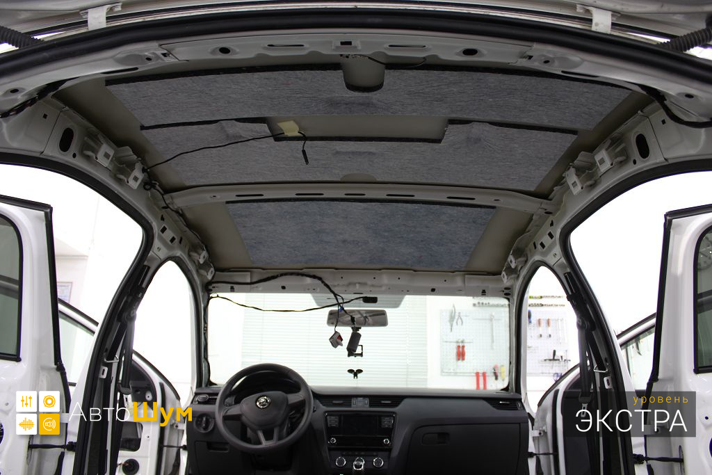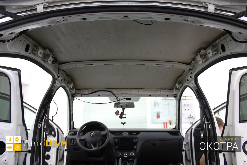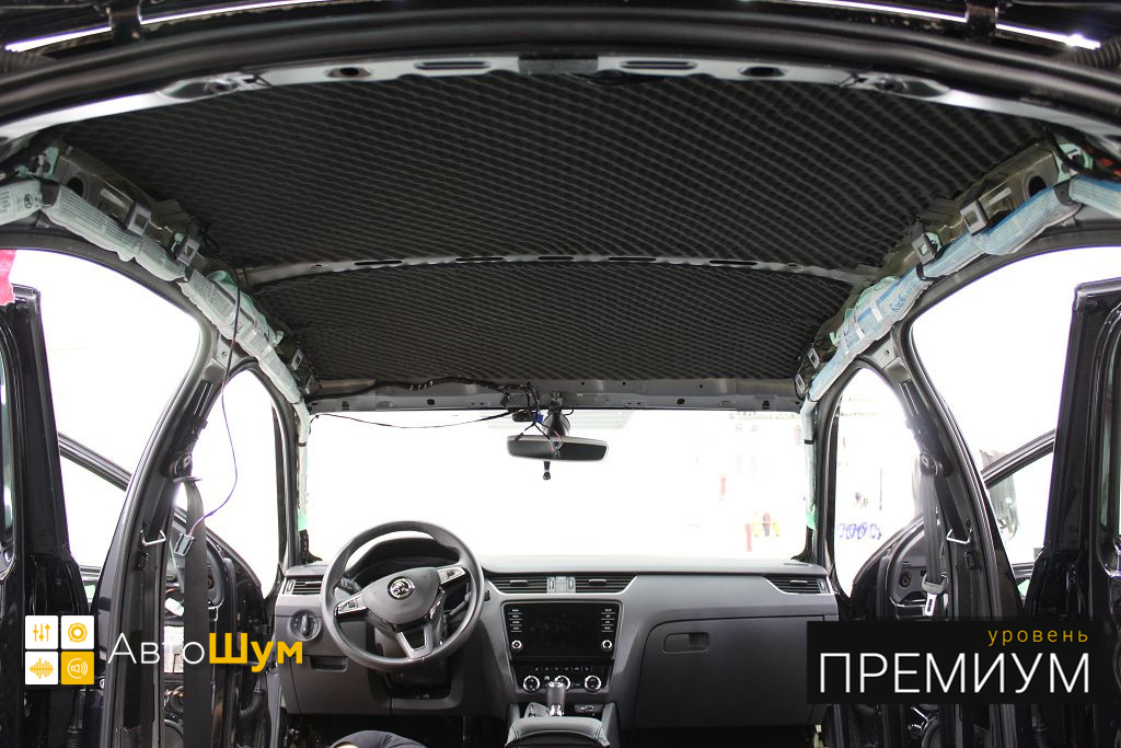 Штатная шумоизоляция крыши на Skoda Octavia (Шкода Октавия) представляет собой несколько элементов из тонкого войлока, чего явно не достаточно.