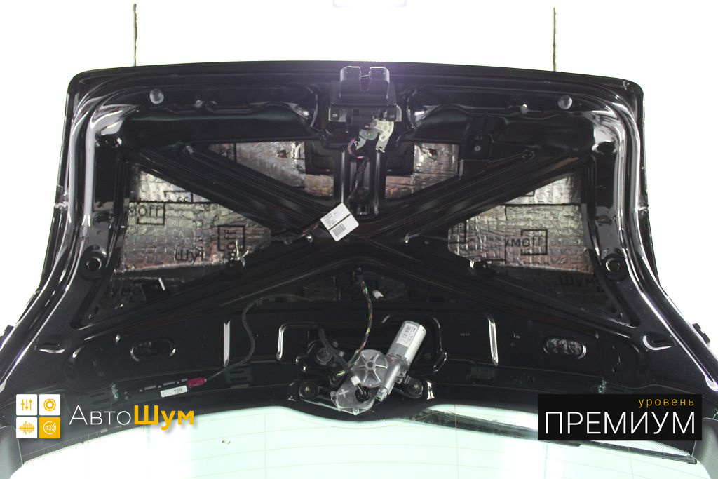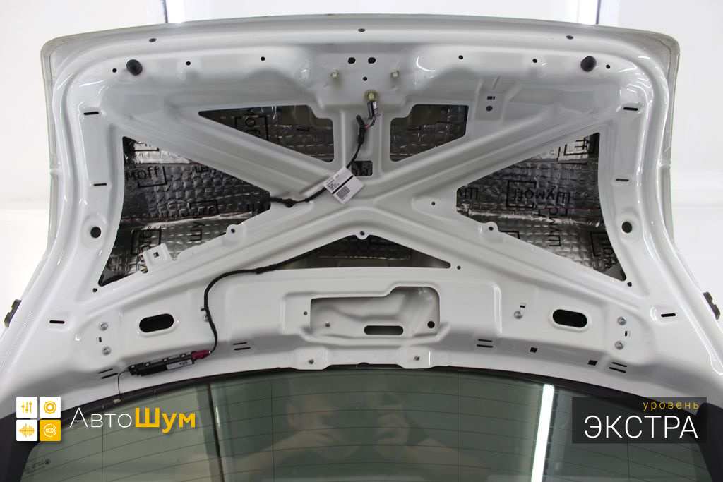 Крышку багажника оклеиваем виброизоляцией Шумофф Joker, это позволит свести увеличение ее веса к минимуму, дабы не возникло проблем с открыванием багажника.