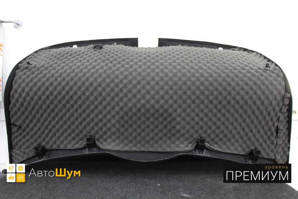 Для виброизоляции крыши багажника используем материал Шумофф L2, чтобы свести увеличение веса к минимуму. После чего переходим к обшивке.