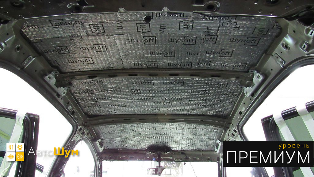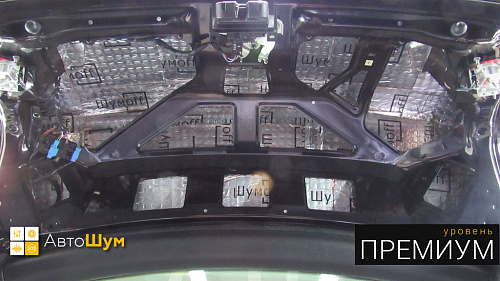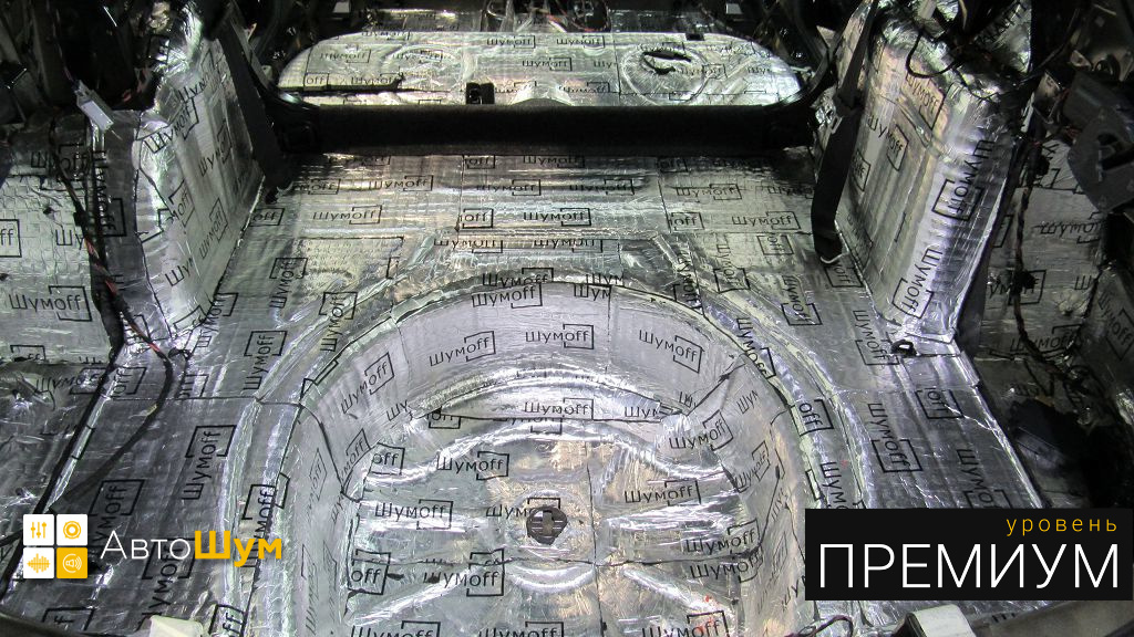 Дно оклеивается многослойным шумо и звукоизолятором Шумофф Prizma 6, крылья, арки и крышка багажника шумопоглотителем Absorber A15.