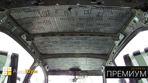 Для виброизоляции крыши багажника используем материал Шумофф L2, чтобы свести увеличение веса к минимуму. После чего переходим к обшивке.
