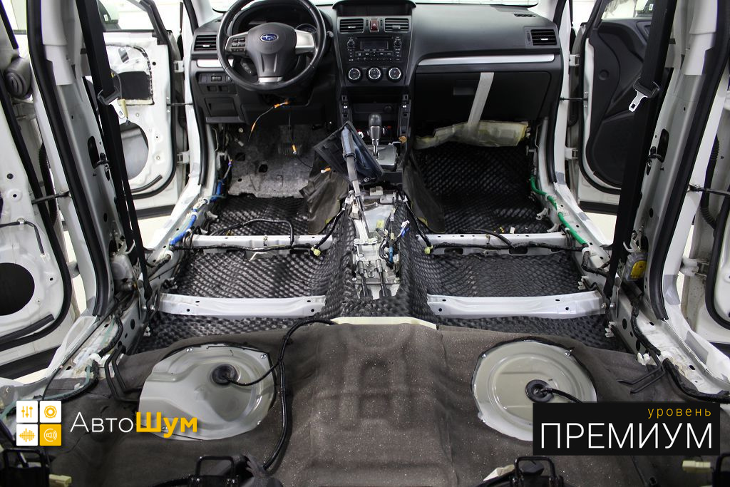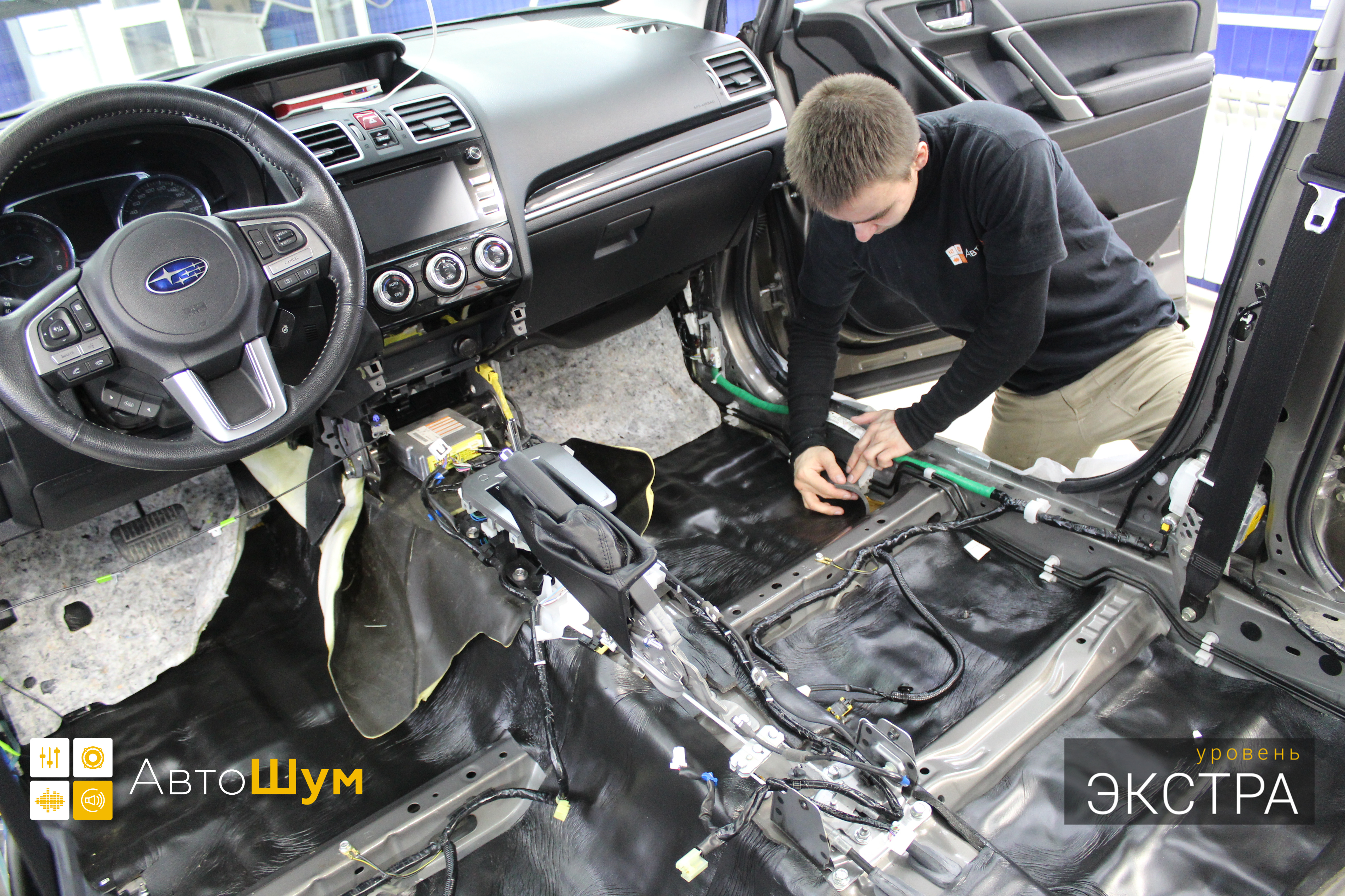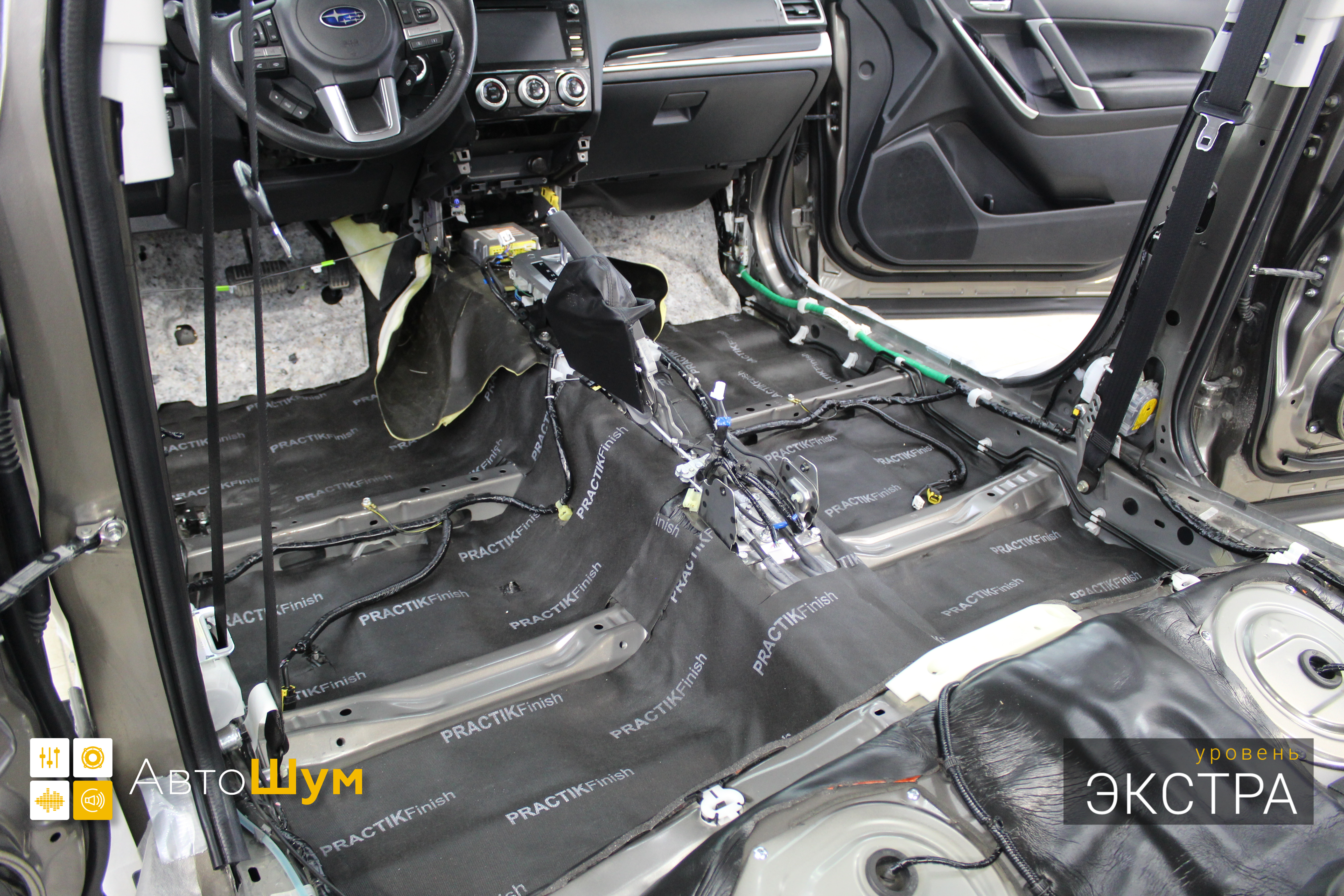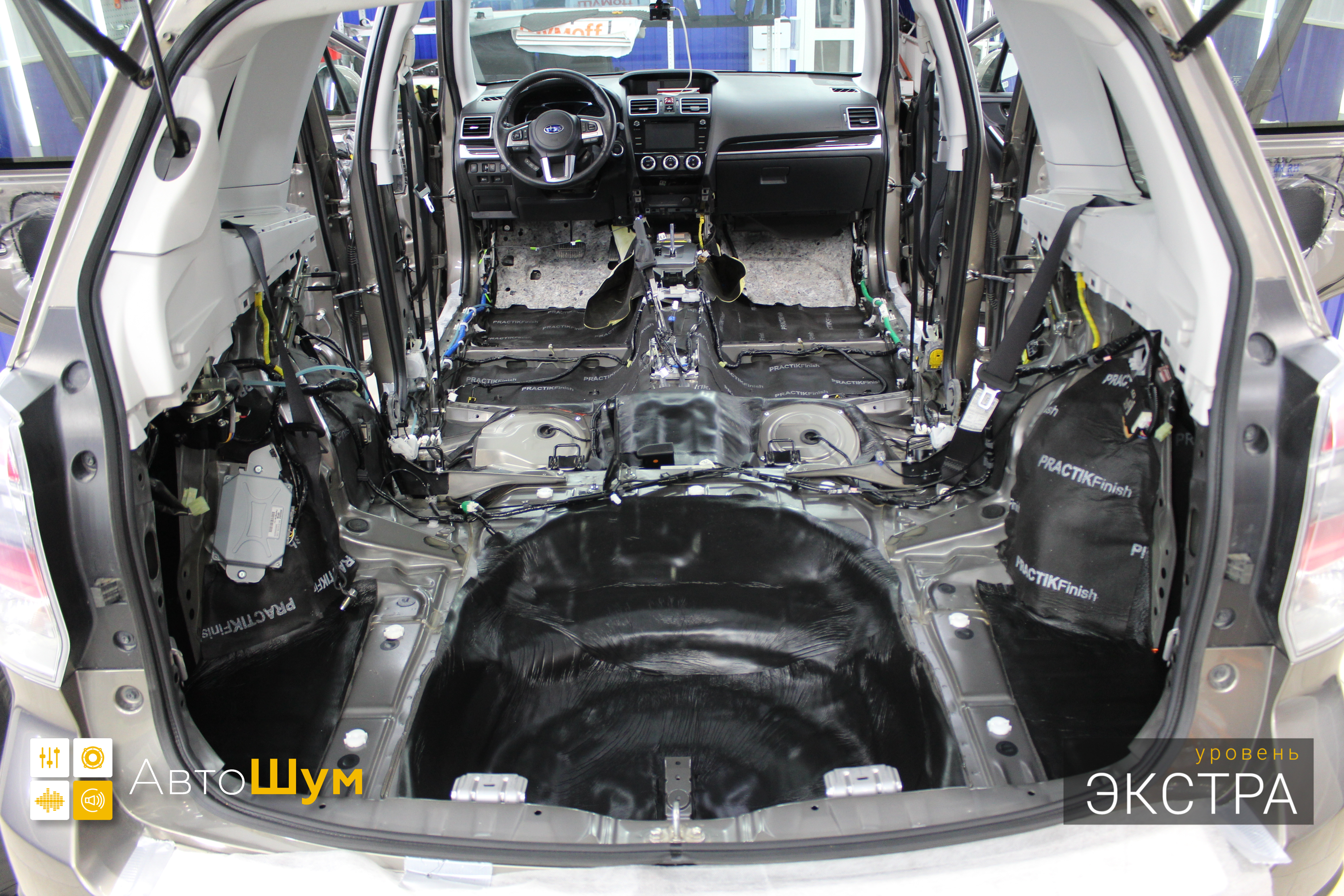 Subaru Forester относится к относительно не дорогому сегменту полно приводных кроссоверов, при всех своих достоинствах, как и большинству Японских автомобилей Форестеру присущ один существенный недостаток – низкий уровень шумоизоляции и плохо играющая акустика. Исправить эти недочеты можно, сделав дополнительную шумоизоляцию Субару Форестер.