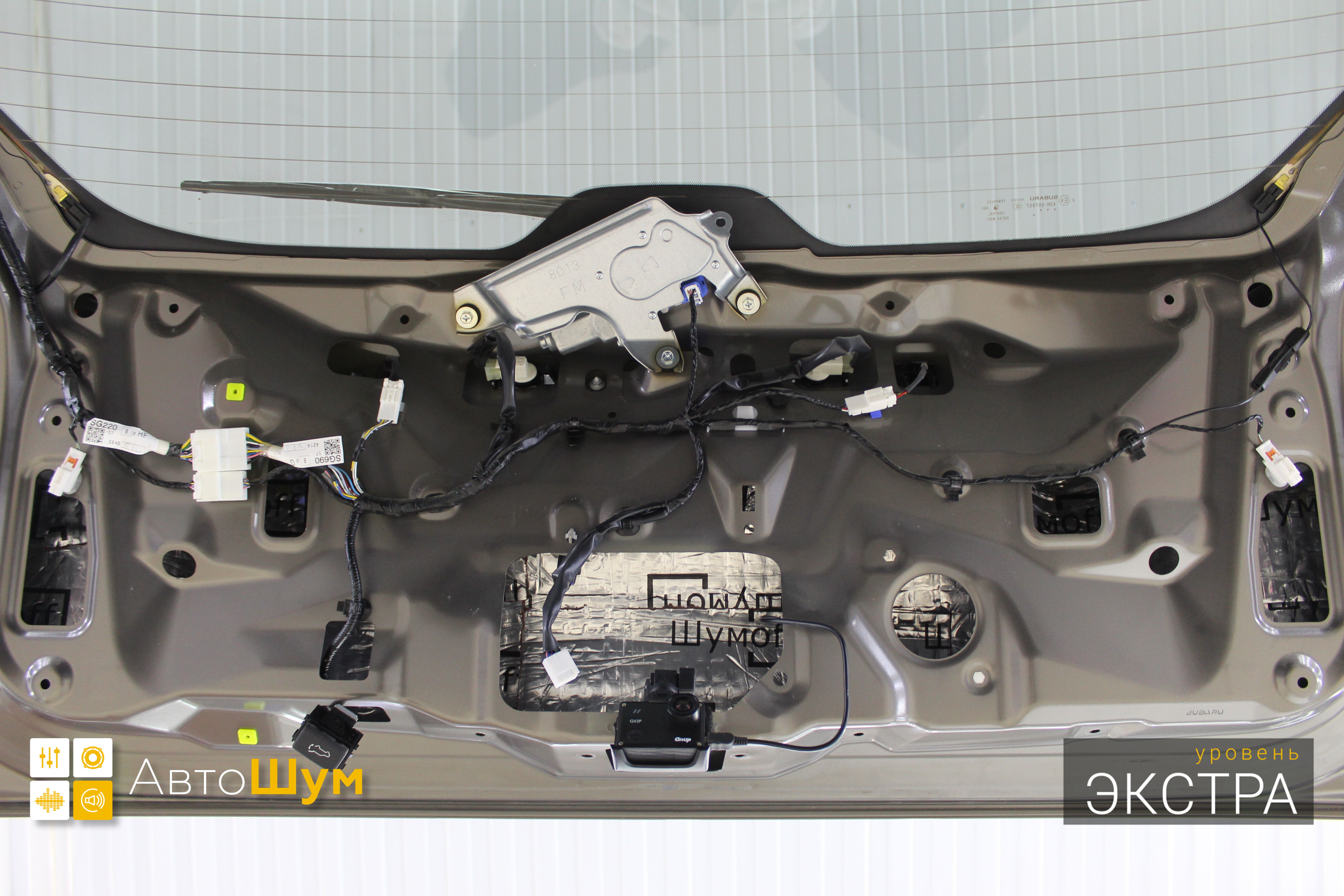 Обшивку пятой двери оклеиваем Flex А15, для устранения ненужных скрипов и бряков.