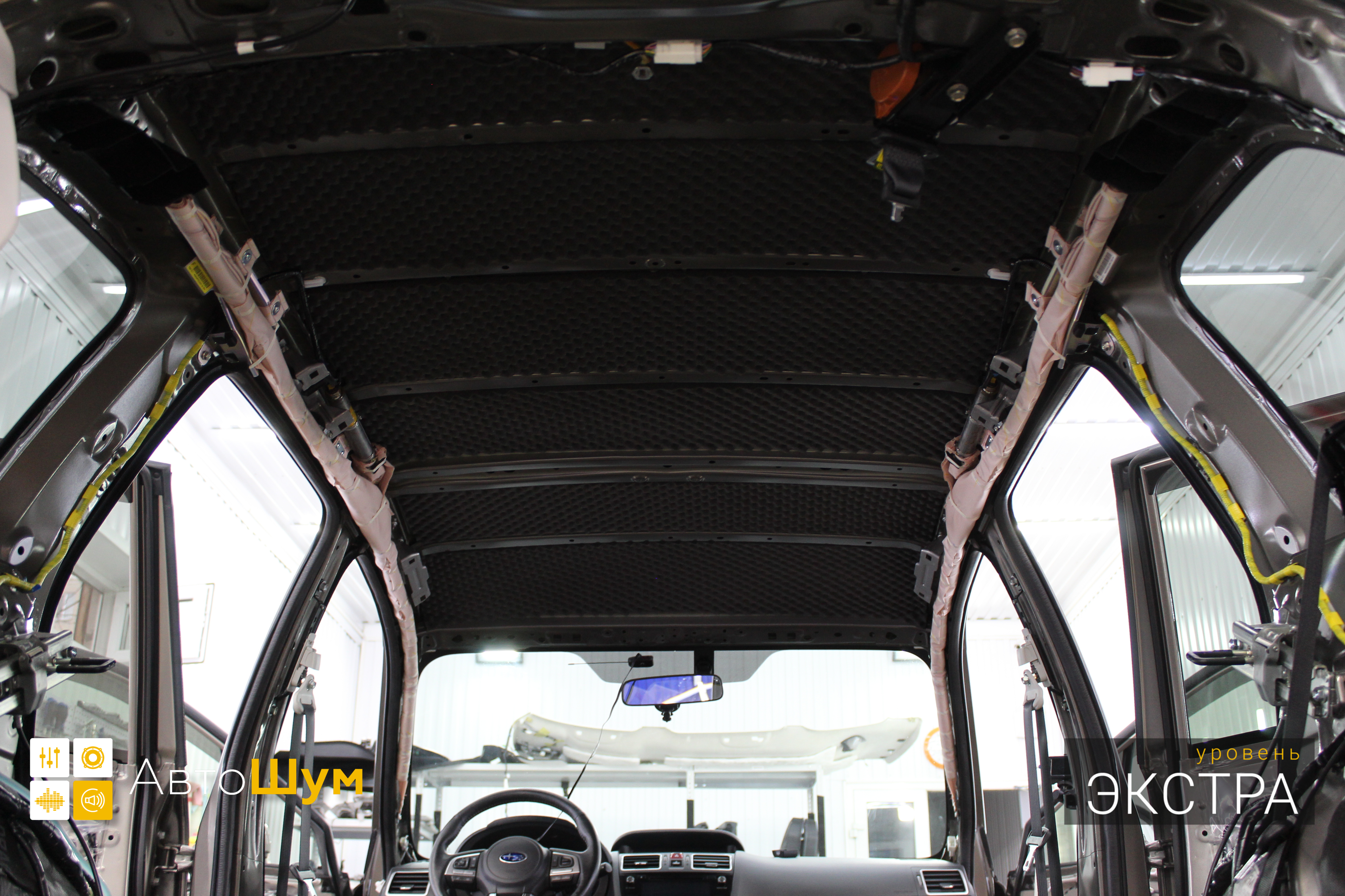 Штатная шумоизоляция крыши на Subaru Forester (Субару Форестер) представляет собой всего несколько элементов из тонкого материала, чего явно не достаточно.