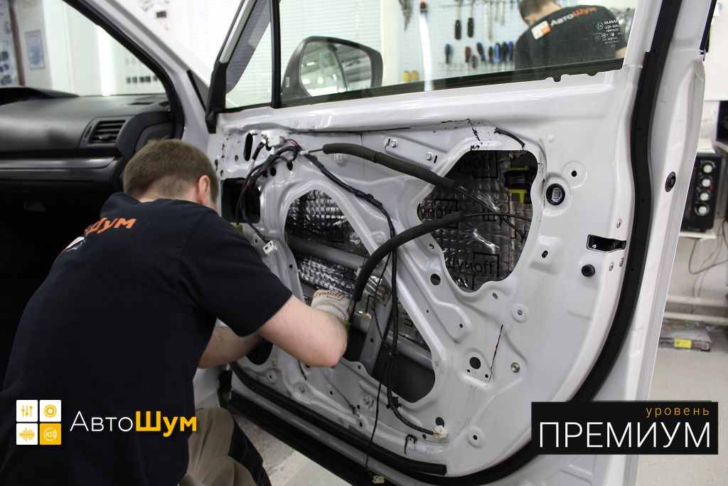 Виброизоляция дверей Субару Форестер Этот слой помимо еще одного барьера для внешнего шума позволит раскрыть потенциал акустической системы, установленной в дверях.