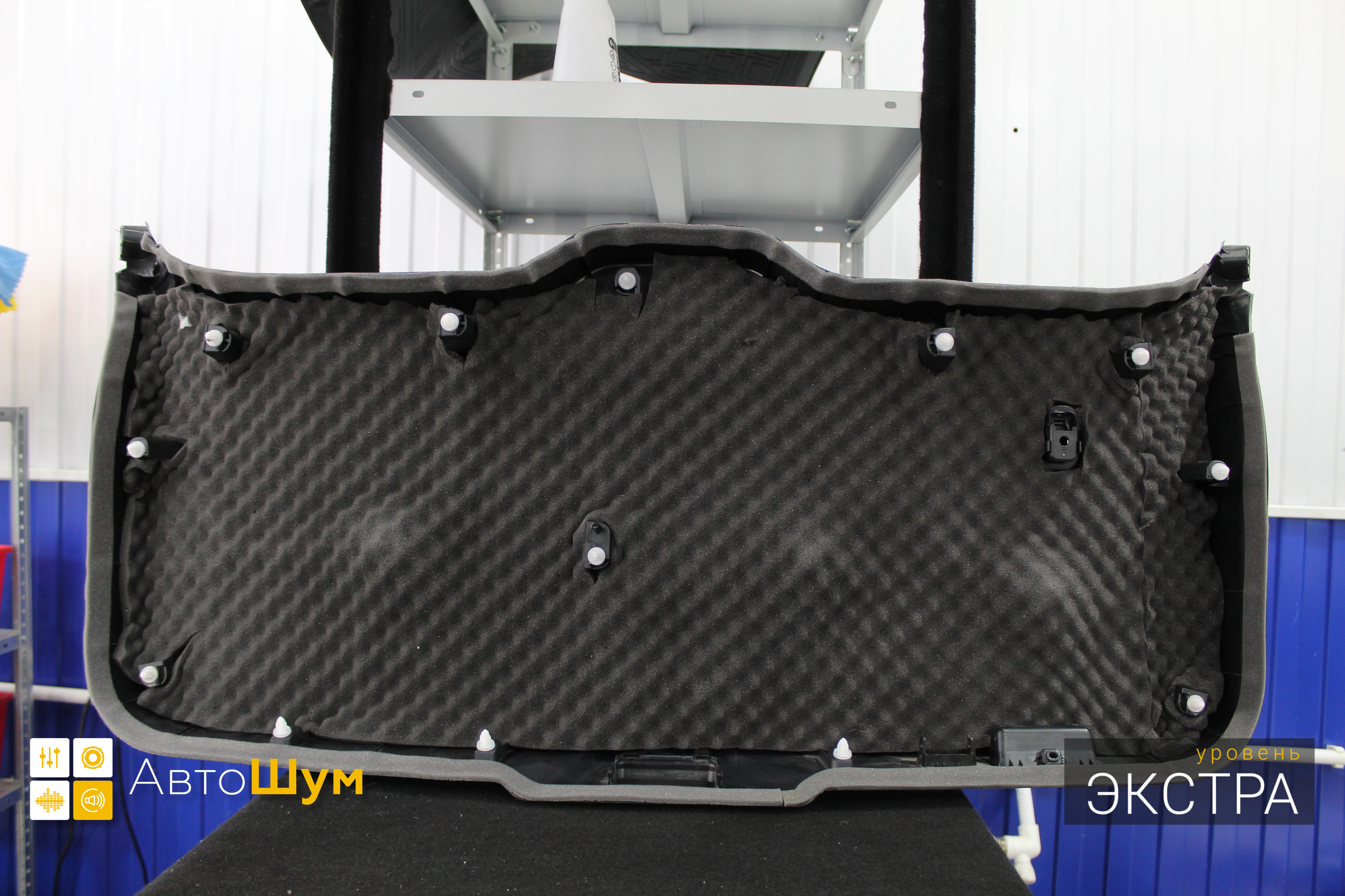 Для виброизоляции крыши багажника используем материал Шумофф L2, чтобы свести увеличение веса к минимуму. После чего переходим к обшивке.