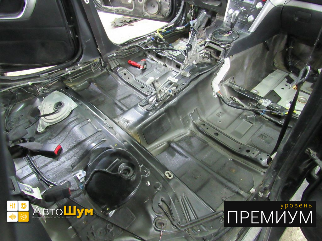 От моторной перегородки и до заднего сиденья вмести с ним клеится мощный многослойный шумо и звукоизолятор Шумофф Prizma 6.