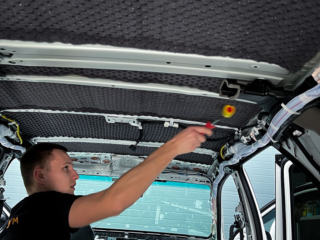 Шумоизоляция крыши Тойота Фортунер Вторым слоем поверх виброизоляции клеим на крышу современный и очень эффективный шумопоглотитель Шумофф Absorber А15.