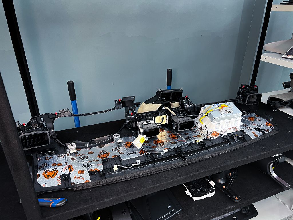 Приступаем к разбору панели и центральной консоли, аккуратно демонтируем воздуховоды, молдинги, декоративные вставки. Далее переходим к электронике, отключаем провода от магнитолы, климат контроля и различных кнопок, никакого вмешательства влияющего на гарантию не происходит, мы лишь штатно отключаем и подключаем разъемы.