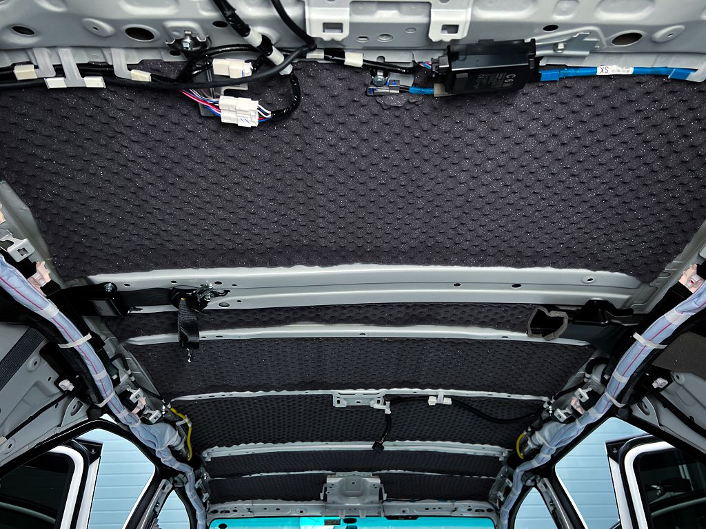 Шумоизоляция крыши Тойота Фортунер Так же оклеиваем всю поверхность крыши между ребер жесткости, стыки делаем максимально плотными без щелей.Тем самым получаем на крыше максимально эффективный компоновку из двух видов материалов. Это позволит нам снизить аэродинамический шум, шум от различных природных факторов и значительно увеличить теплоизоляцию в авто.