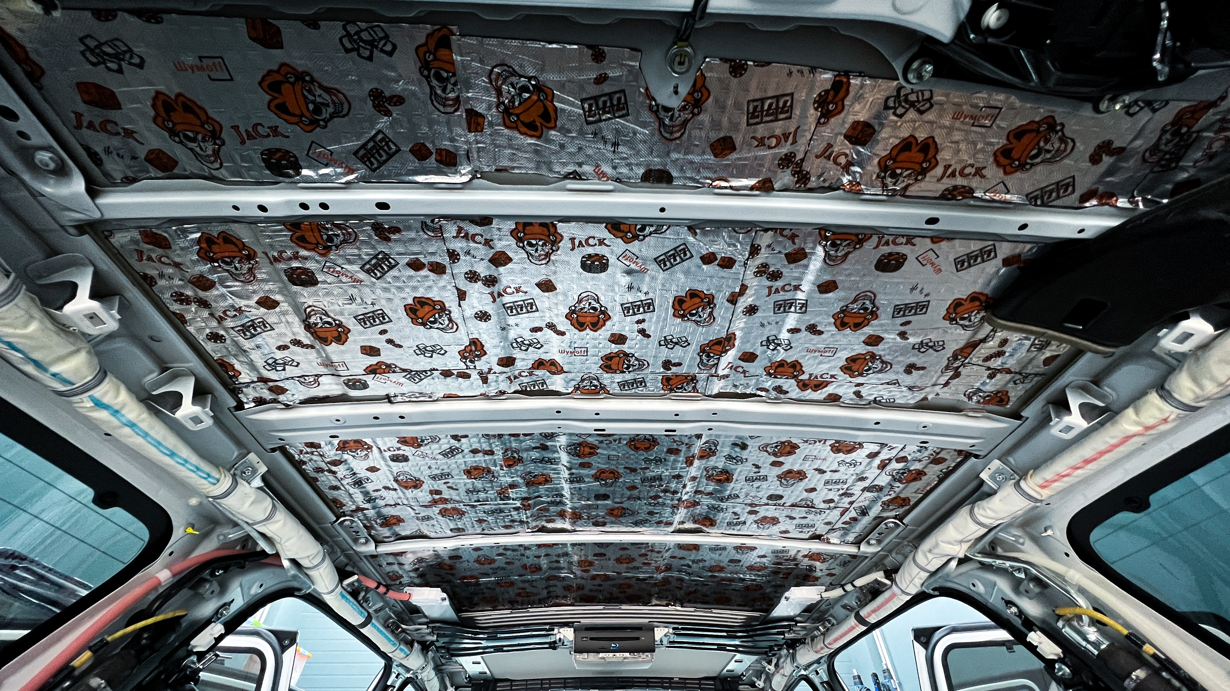 Вторым слоем поверх виброизоляции клеим на крышу современный и очень эффективный шумопоглотитель Шумофф Absorber А15.