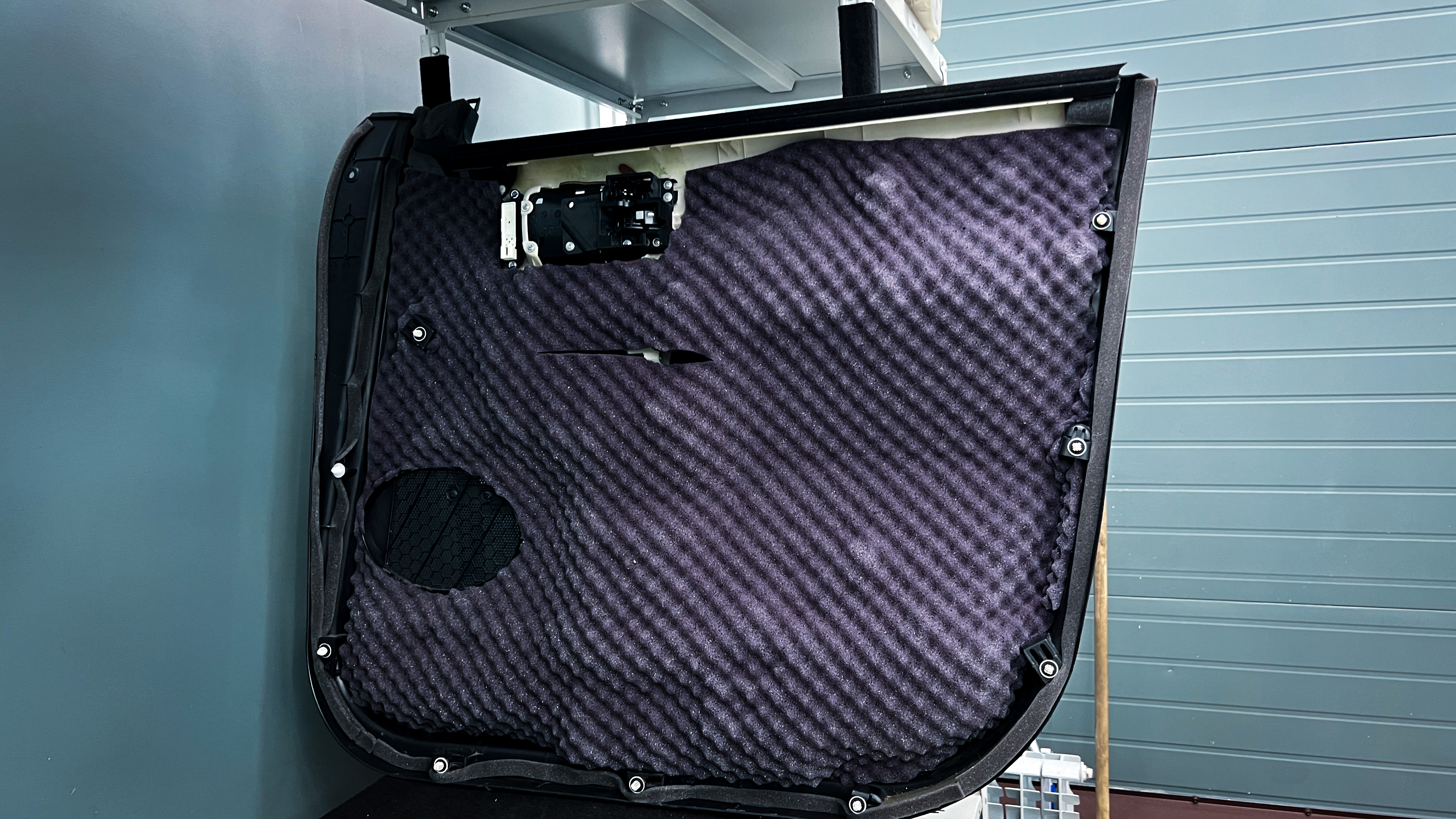 Обшивка двери оклеивается виброизоляцией Шумофф Jack.