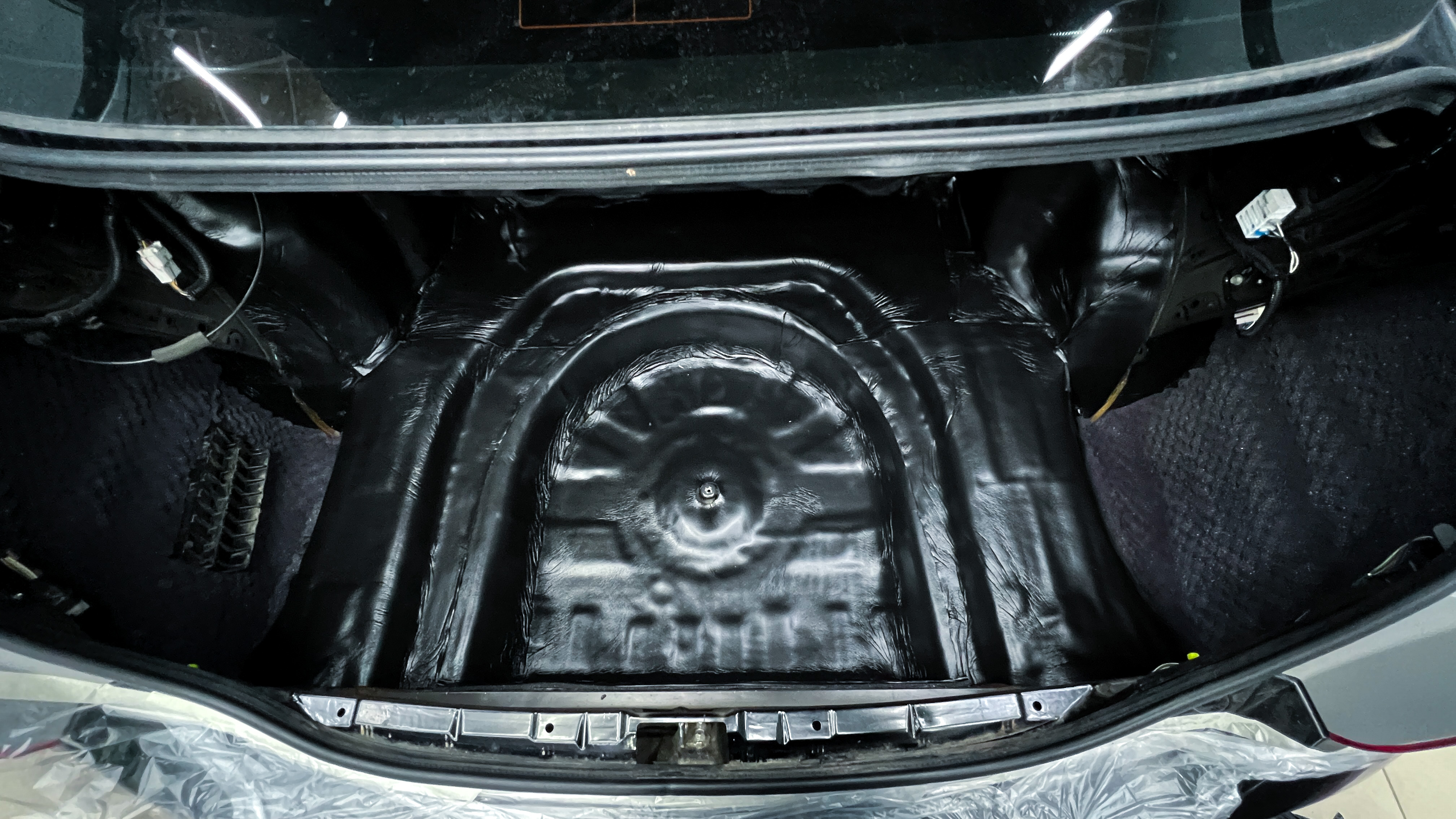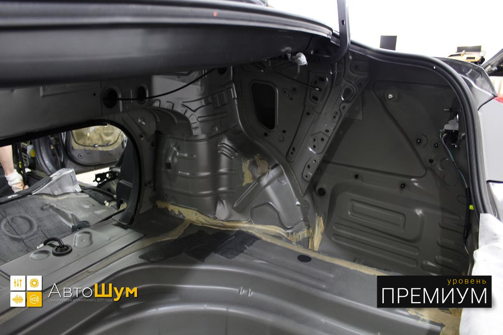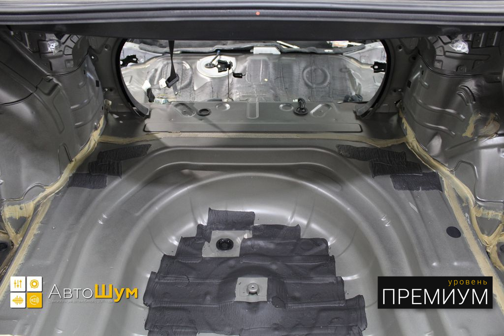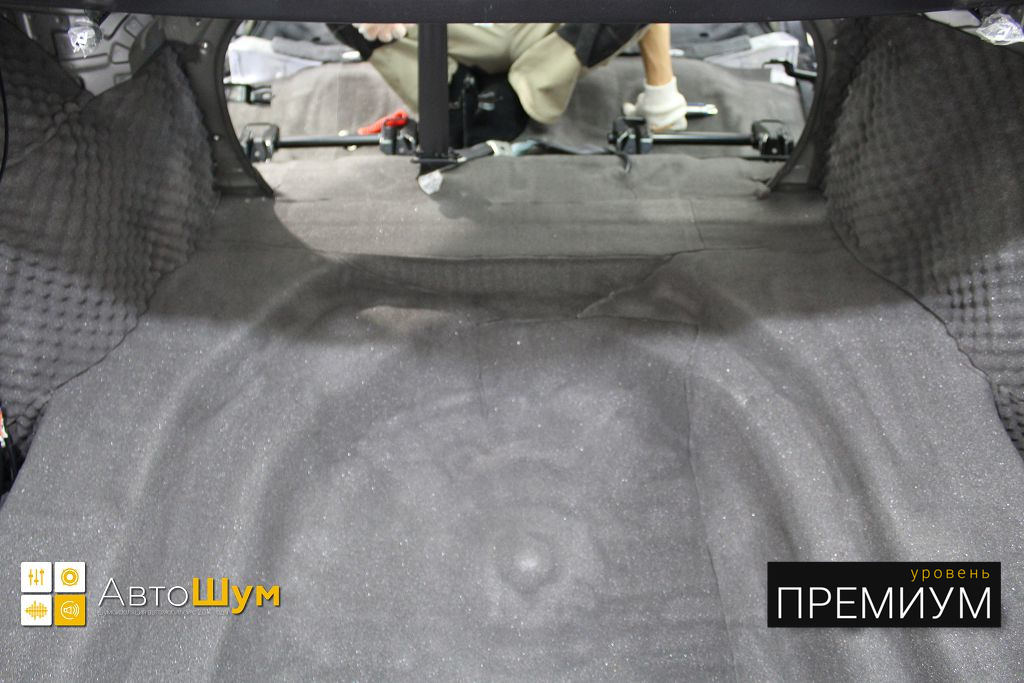 Штатная шумоизоляция в багажнике не балует своим обилием.