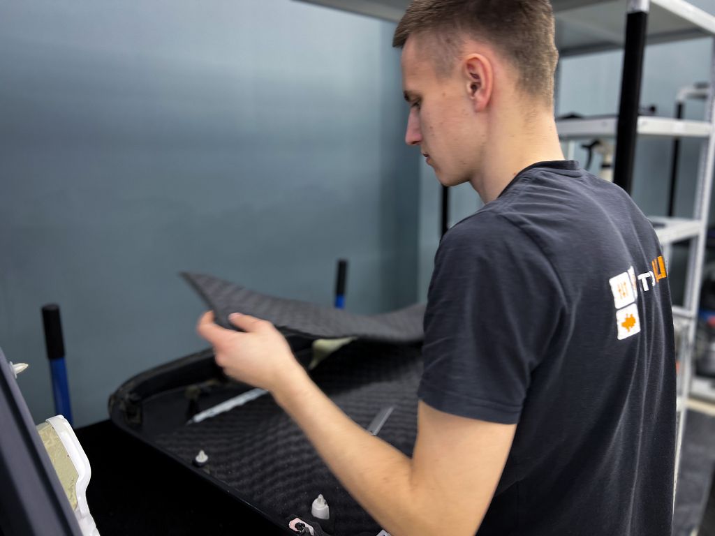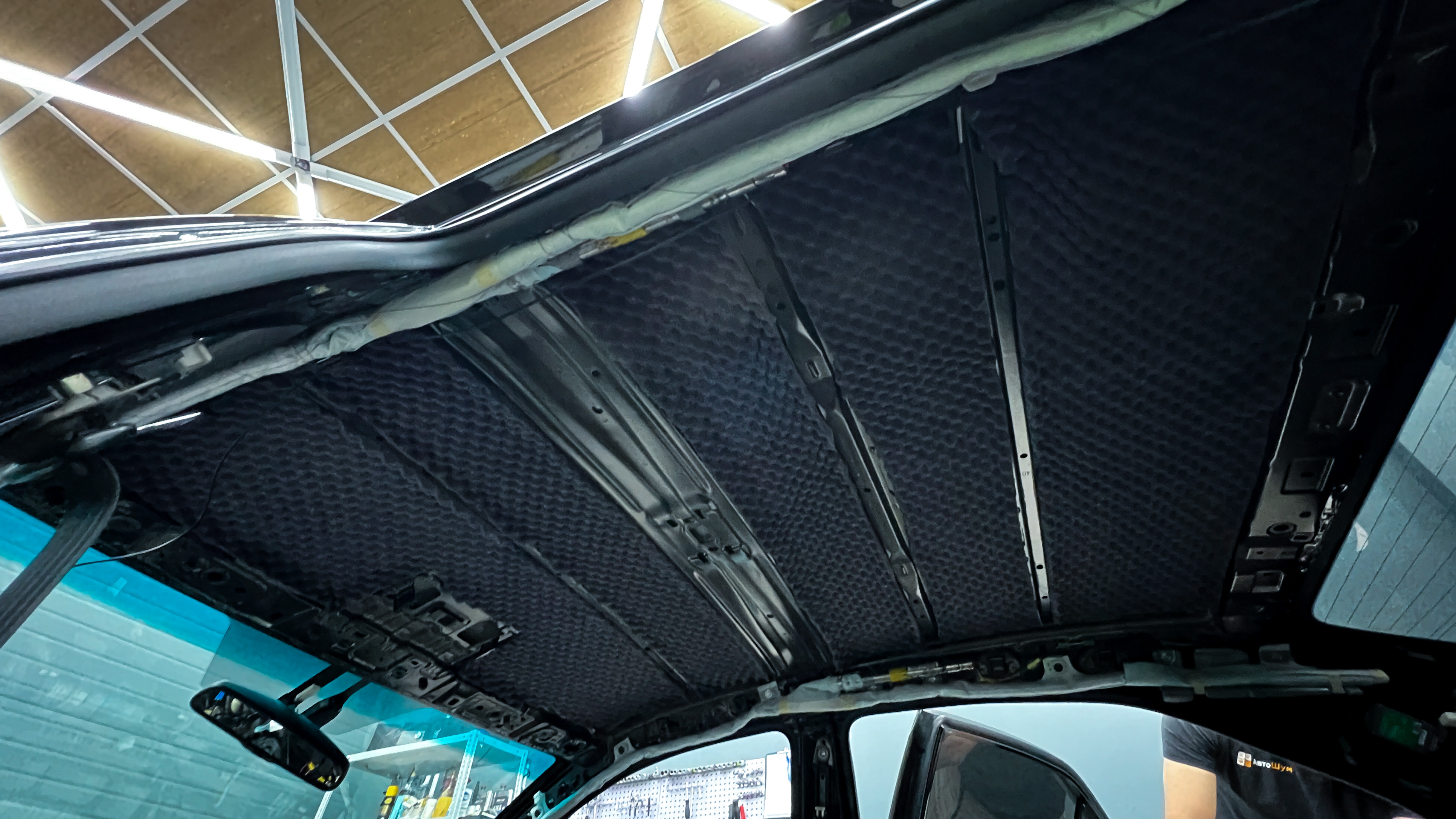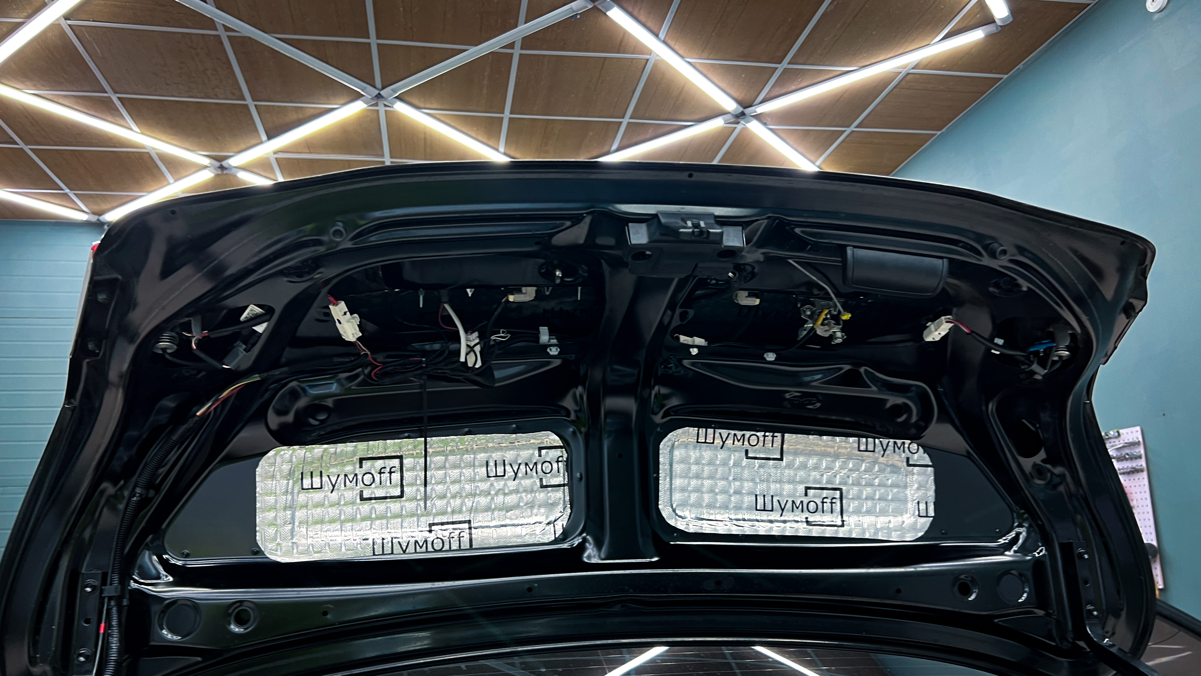 Для виброизоляции крыши багажника используем материал Шумофф L2, чтобы свести увеличение веса к минимуму. После чего переходим к обшивке.