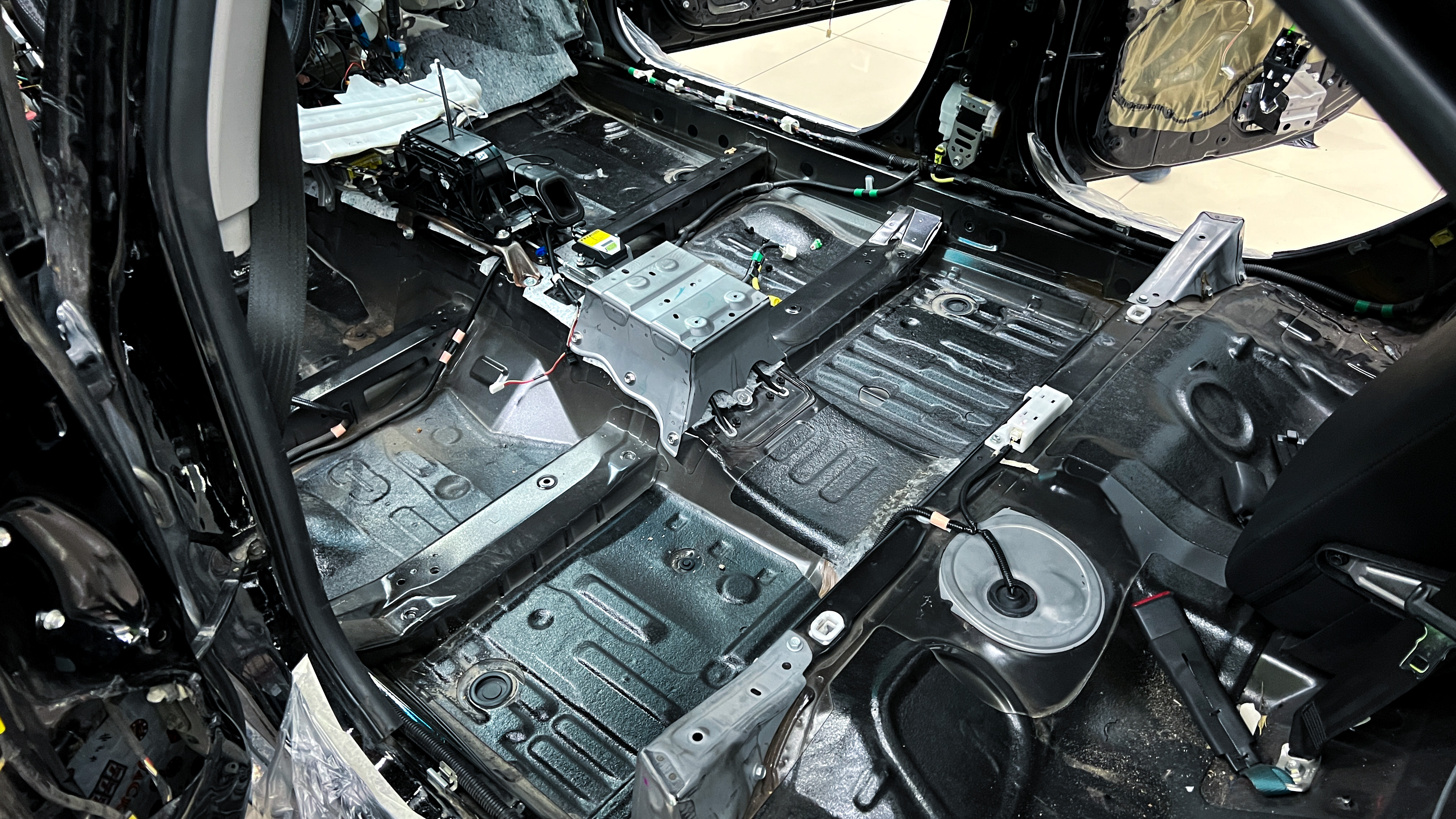 Перед началом шумоизоляции пола на Toyota Camry (Тойоты Камри) необходимо проверить качество адгезии заводской виброизоляции к кузову.