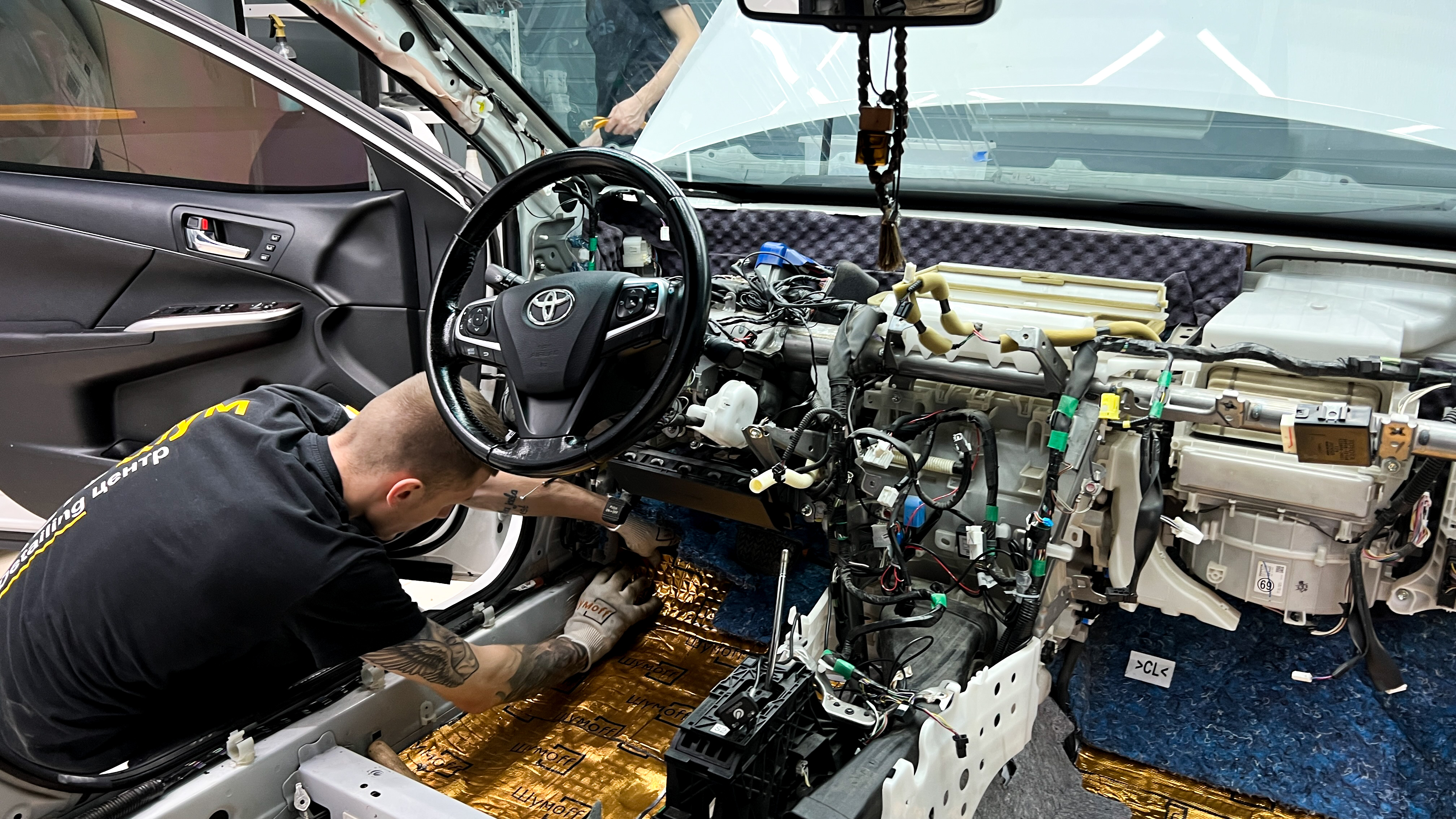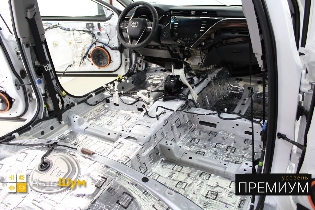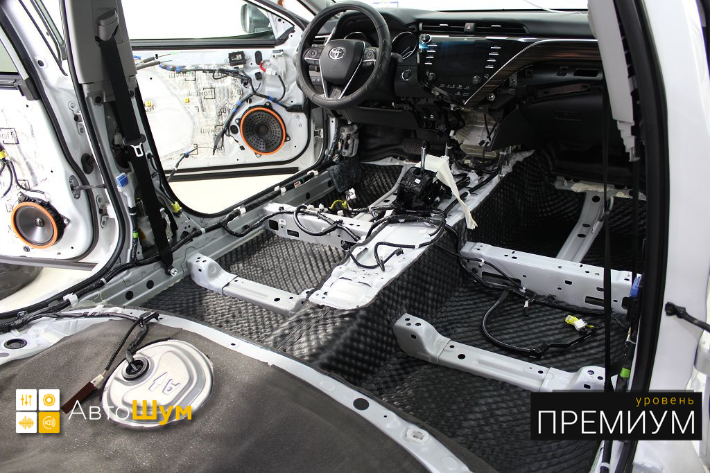 Toyota Camry является комфортным автомобилем бизнес класса, однако как и практически все Японские и Корейские автомобили не лишён основного недостатка, низкий уровень шумоизоляции даже в максимальной комплектации. Плохо играющая акустическая система, шум от колес при езде по трассе - не устраивают владельцев. Исправить эти недочёты можно, сделав дополнительную шумоизоляцию Тойоты Камри.