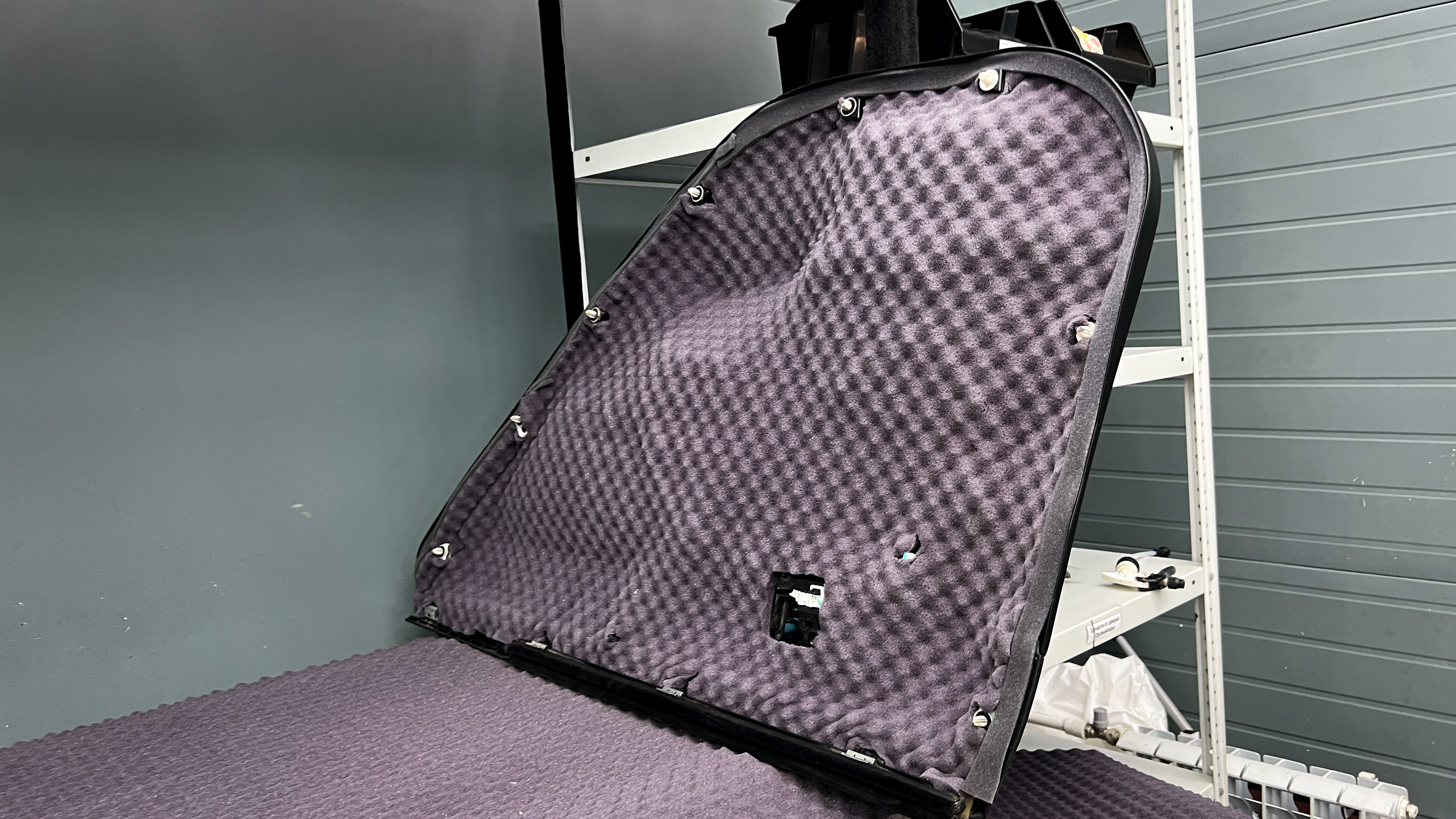 Внутренняя поверхность обивки оклеивается шумопоглотителем Шумофф Flex А15.