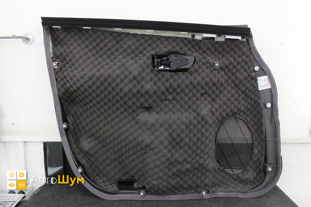 Шумоизоляция дверной обшивки Тойота Приус Этот слой отлично справится со снижением внешних шумов, уплотнит пространство между обшивкой и дверью, а также избавит от ненужных скрипов и дребезгов.