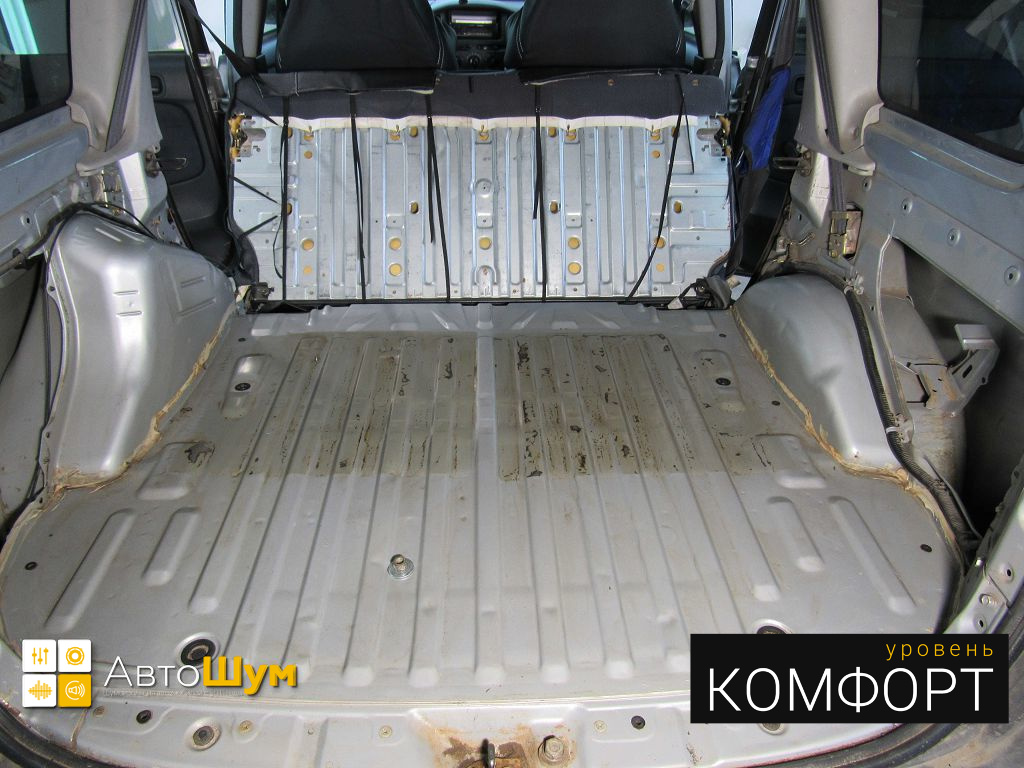 Дно багажника и крылья оклеиваются шумо и теплоизолятором Шумофф П4 4. Арки оклеиваются шумопоглотителем Flex A15.