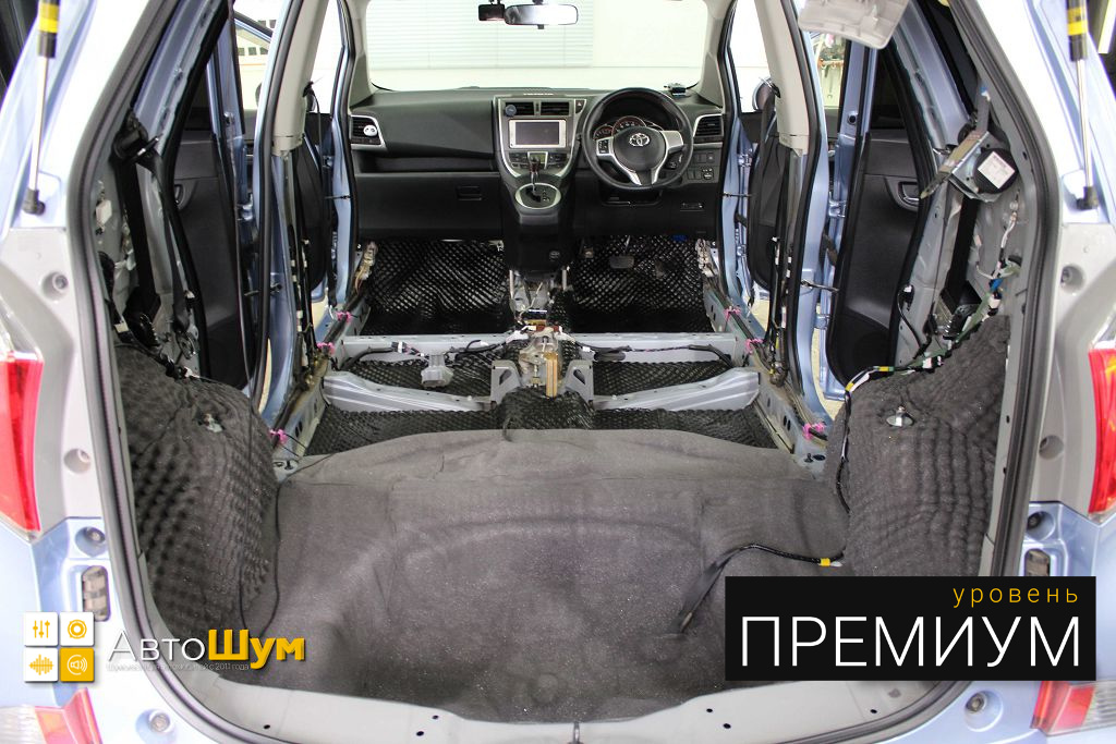 Toyota Ractis - практичный во всех смыслах автомобиль, компактные размеры кузова при довольно просторном салоне, небольшой расход топлива и доступная цена - все это с легендарной надежностью Toyota. Однако на автомобилях такого класса с завода плохая шумоизоляция, в салоне хорошо слышно шум от дороги и шин, а так же в наших климатических условиях становится недостаточно теплоизоляции. Все это можно исправить с помощью дополнительной шумоизоляции салона Тойоты Рактис.