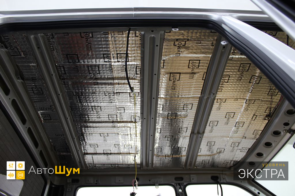Для виброизоляции крыши багажника используем материал Шумофф L2, чтобы свести увеличение веса к минимуму. После чего переходим к обшивке.